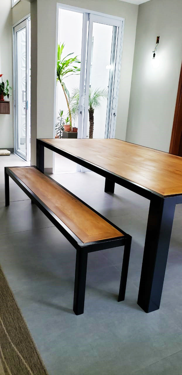 Gabriela Bench 140x40cm Iron and Rustic Solid Wood Peroba-Rosa - Toth Furniture Store Presidente Prudente