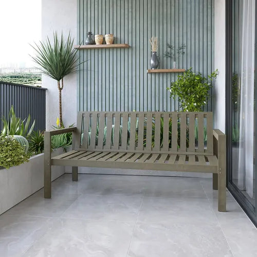 Straight Slatted Bench in Solid Wood