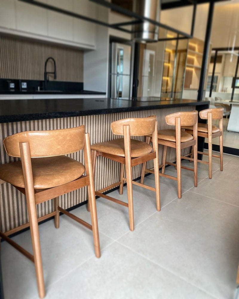 Natural wood color Upholstered seat Fabric Facto Cognac 890A