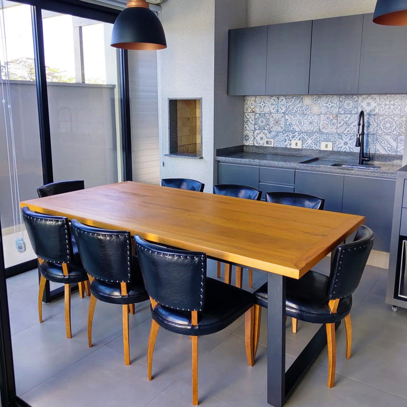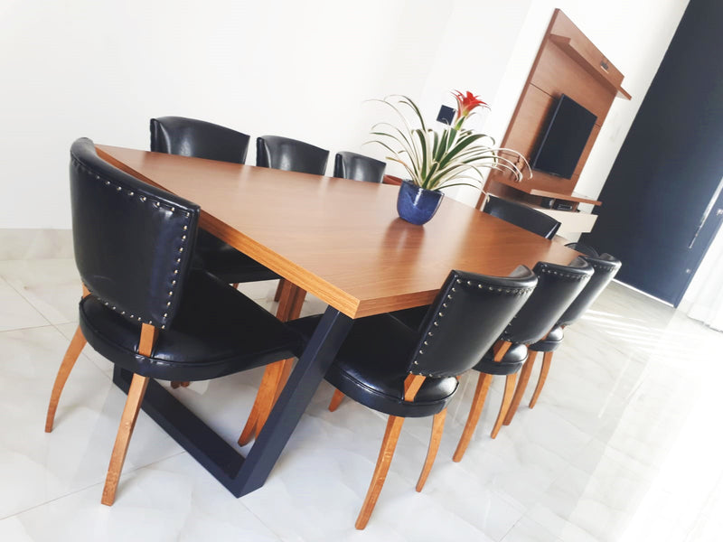 Bianca Dining Chair Pine Color Black PU Upholstered Seat - Toth Furniture Store Presidente Prudente
