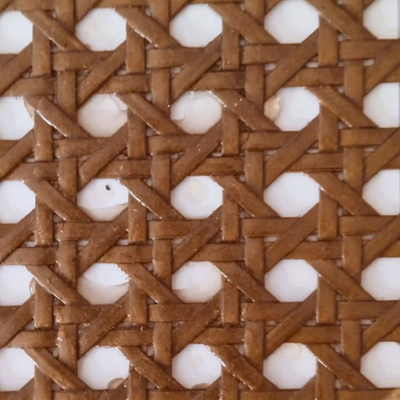 Zafira Stool Imbuia Wood Color Backrest Natural Hexagonal Straw Fabric Light Linen Upholstered Seat