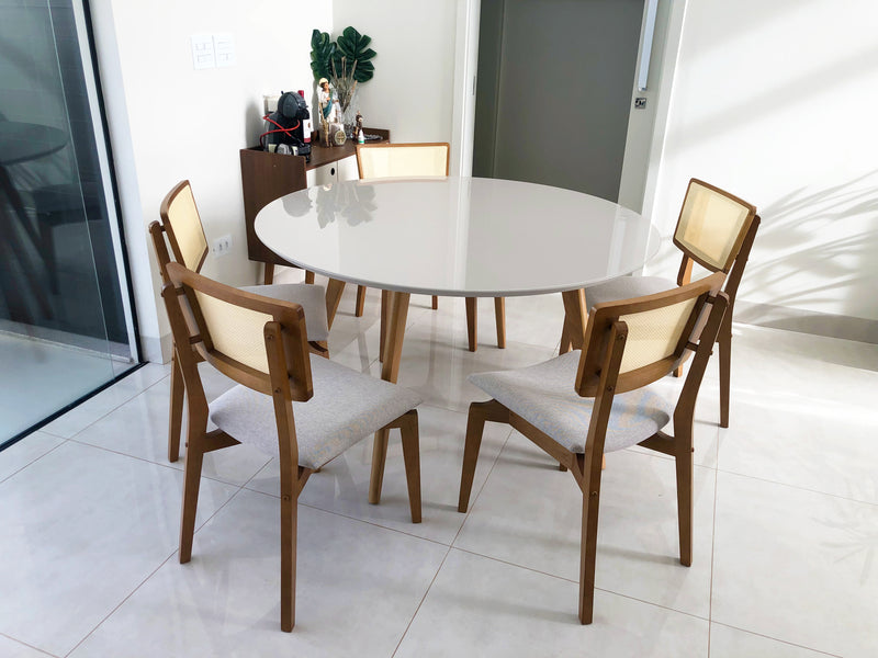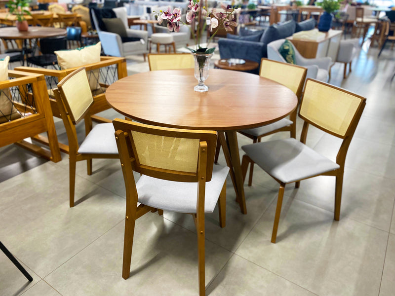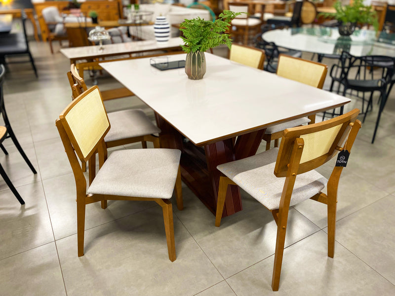 Naomi Chair with Wood Backrest, Closed Mesh, Light Linen Upholstered Seat - Toth Furniture Store, Presidente Prudente