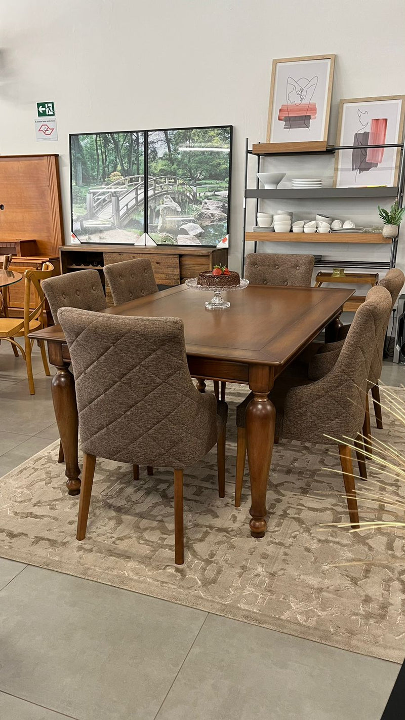 Norway Chair Brown Wood and Brown Capitone Upholstery - Toth Furniture Store Presidente Prudente