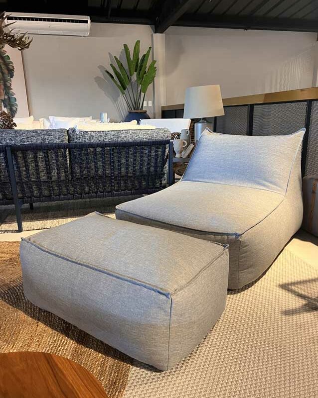 Chaise + Puff Flow Estofado Revestido com Tecido Acqua Block Cinza
