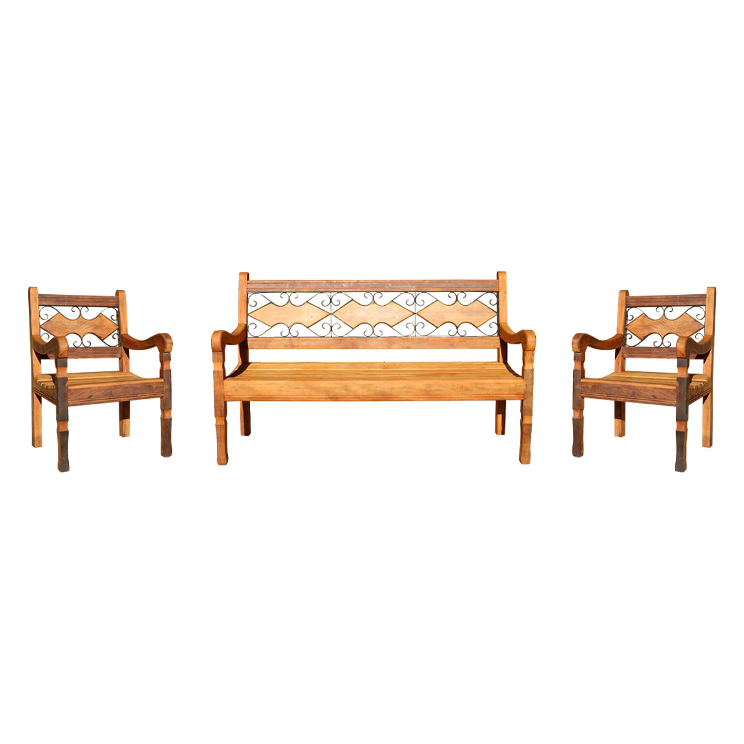 Batman Iron and Rustic Solid Wood Peroba-Rosa Bench Set - Toth Furniture Store Presidente Prudente