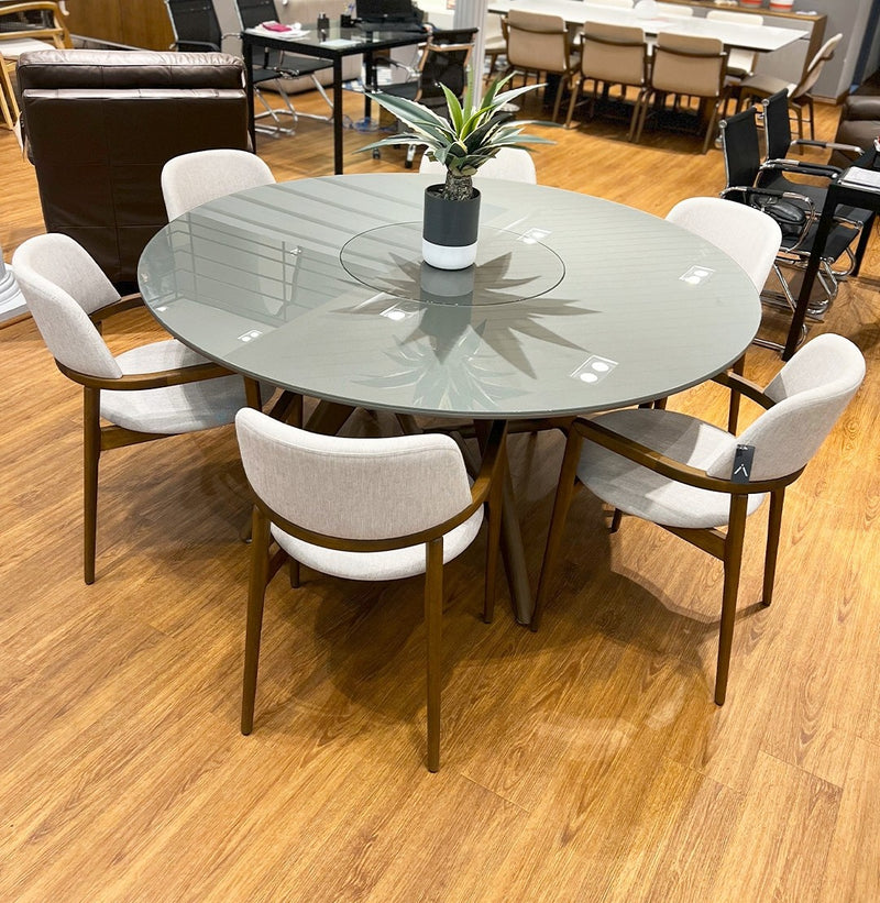 Find Dining Table with Solid Tauari Wood Base and Glass Top 180x90x77cm - Toth Furniture Store Presidente Prudente