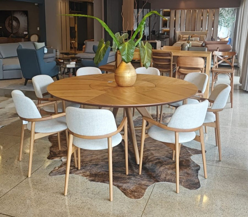 Find Dining Table with Solid Tauari Wood Base and Glass Top 180x90x77cm - Toth Furniture Store Presidente Prudente