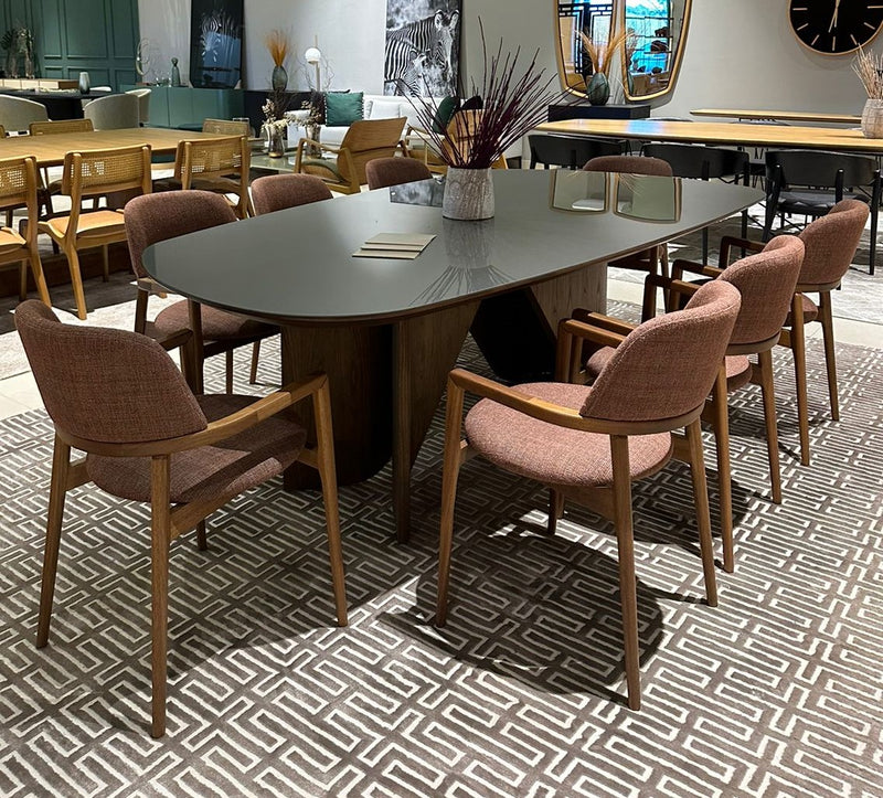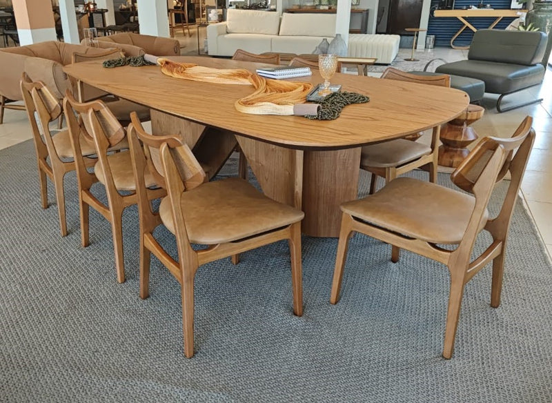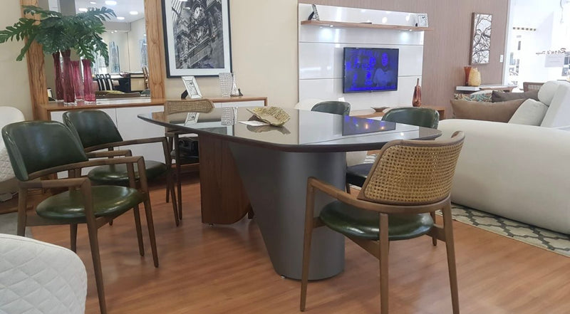 Find Dining Table with Solid Tauari Wood Base and Glass Top 180x90x77cm - Toth Furniture Store Presidente Prudente
