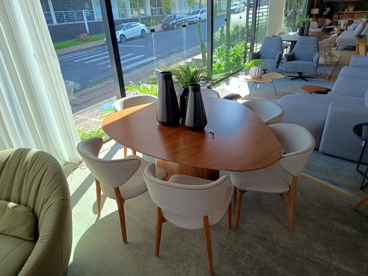Stone Dining Table 160x136cm Wood - 6 Seats - Base in MDF laminated in jequitibá or cinnamon. Top with thin laminated edge or painted glass. - Toth Furniture Store Presidente Prudente