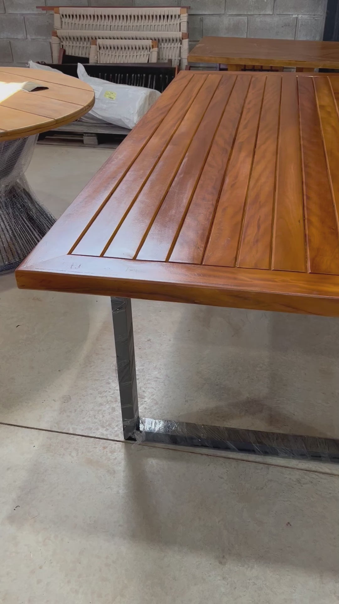 Vera Dining Table 250x110cm Solid Wood Top with Slats and Aluminum Base - 8 Seats