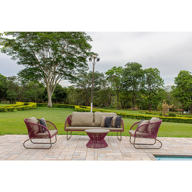 Harmonia Sofa Upholstered in Aluminum Fendi Color with Wine Nautical Rope - 3 Seats