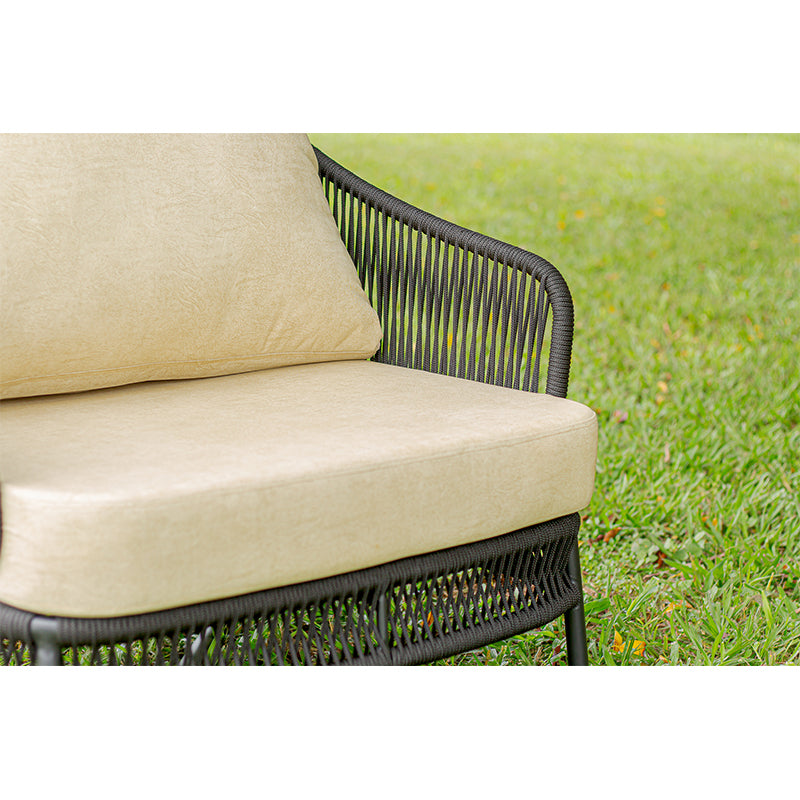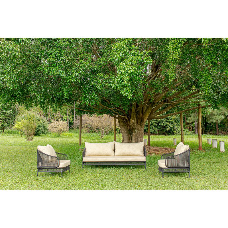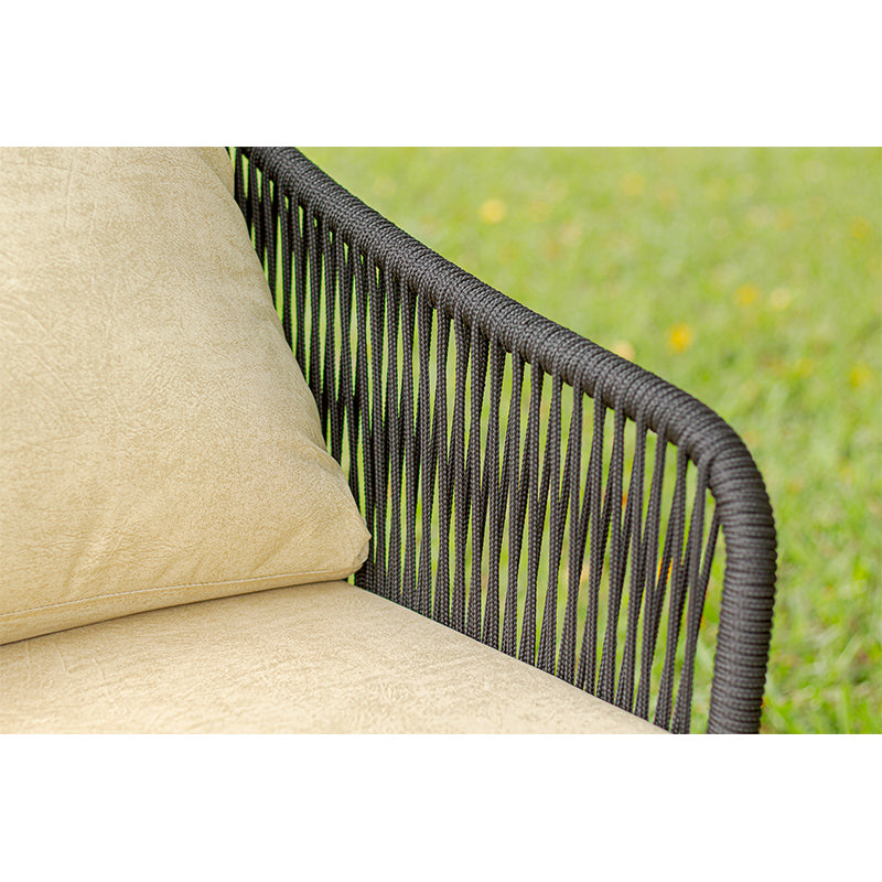 Serena Sofa Upholstered in Black Aluminum with Black Nautical Rope - 3 seats