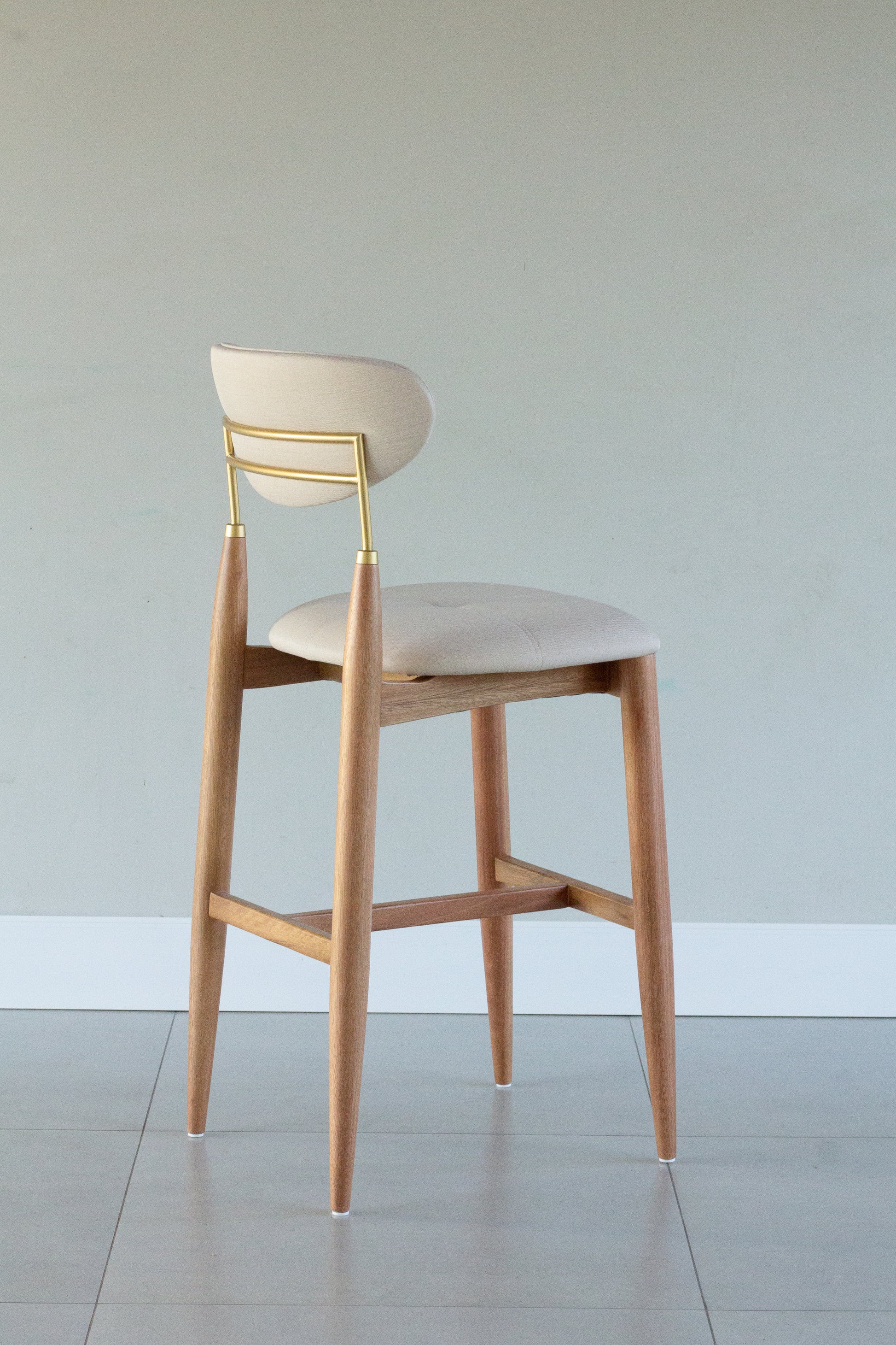 Banqueta Adara Madeira Damasco Metal Dourado Assento Tecido A+05
