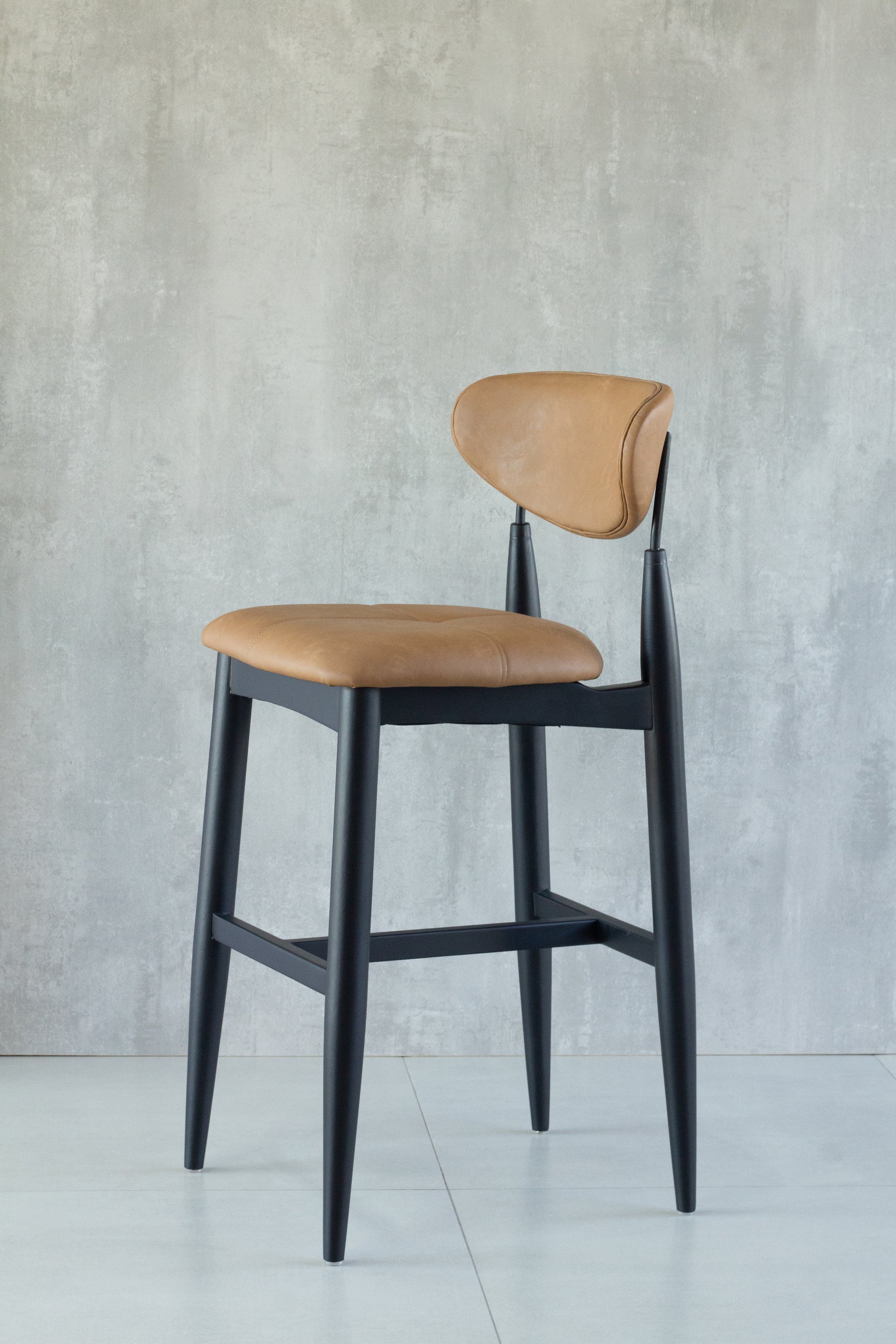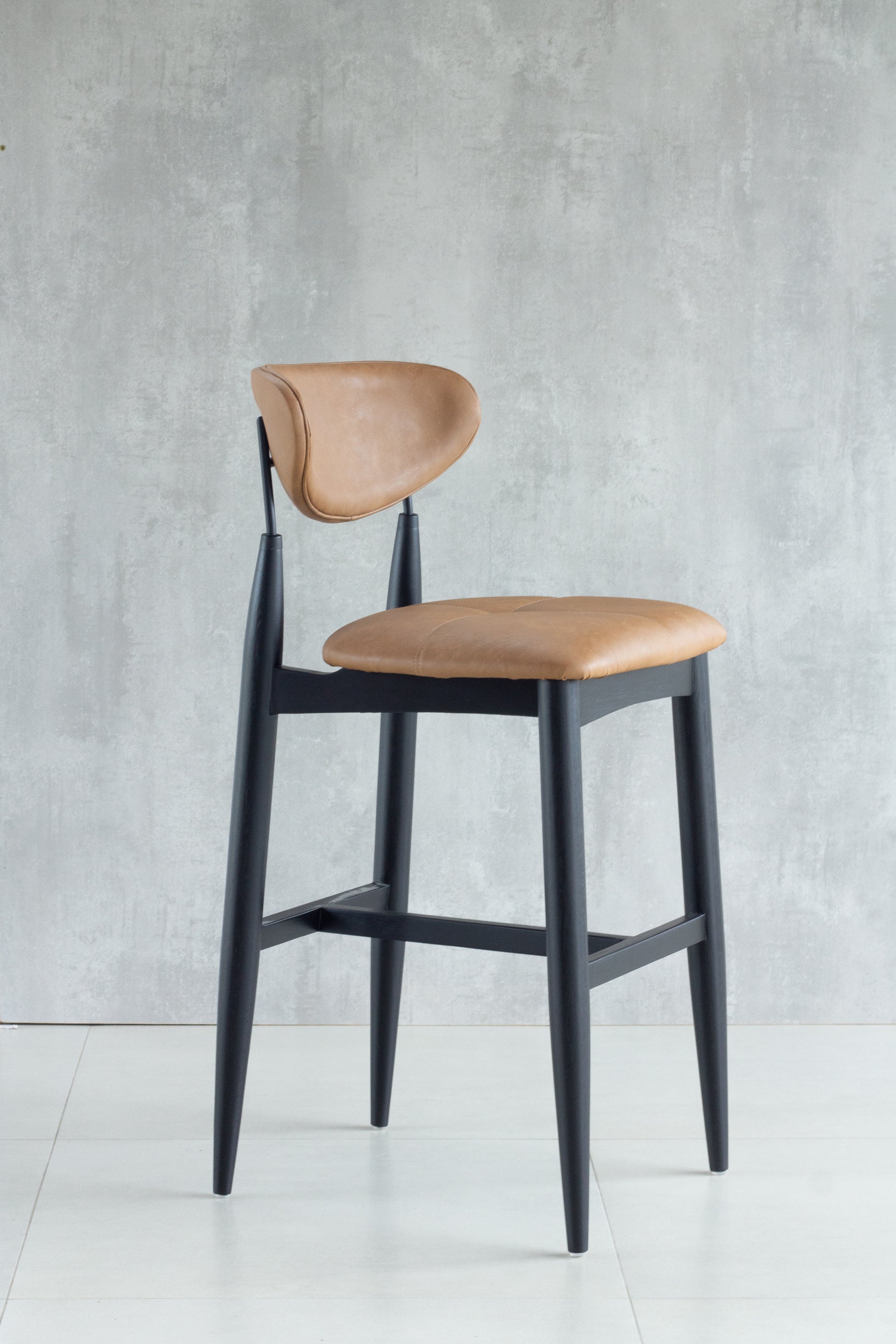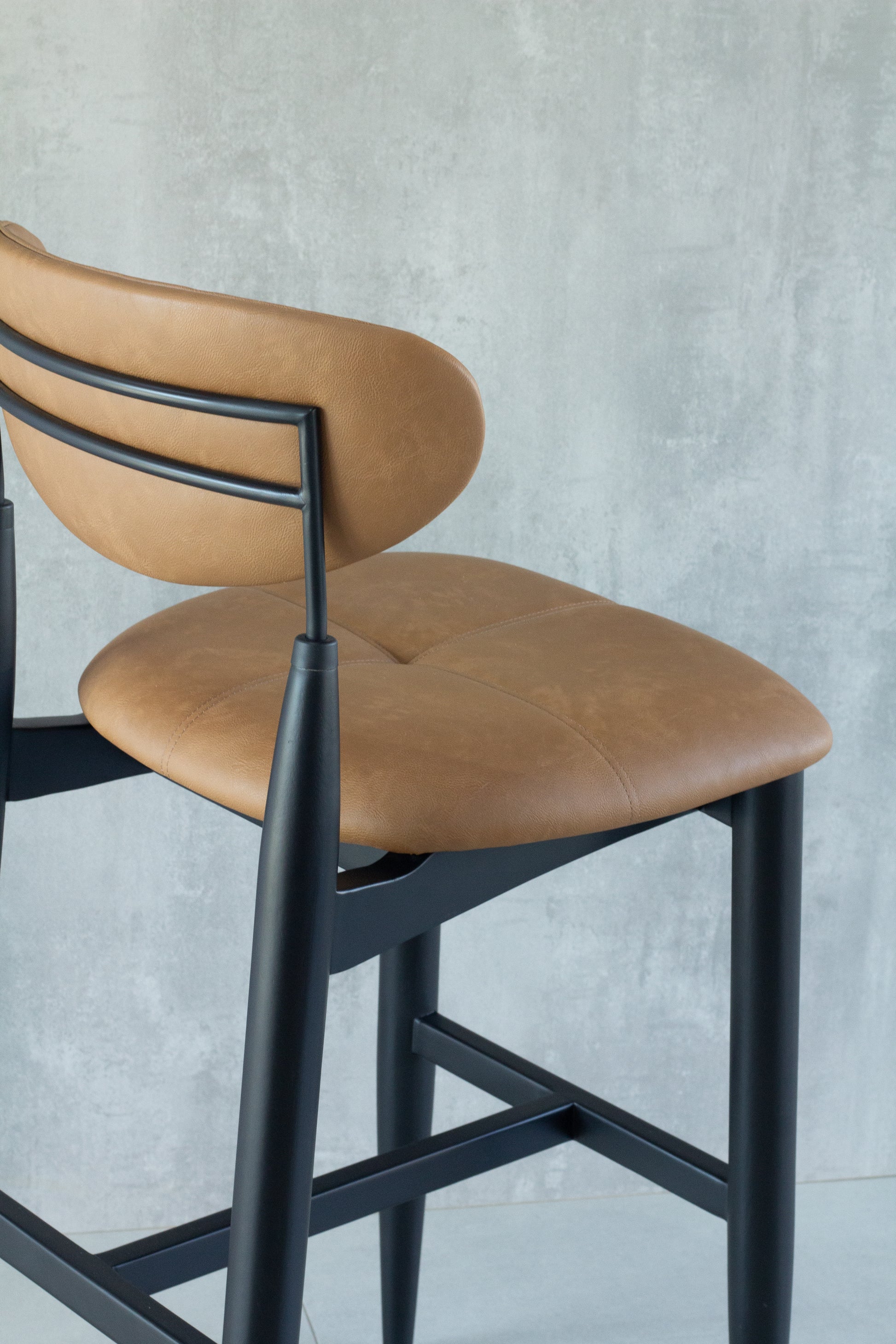 Banqueta Adara Madeira Ebano Metal Preto Assento Couro AA9011