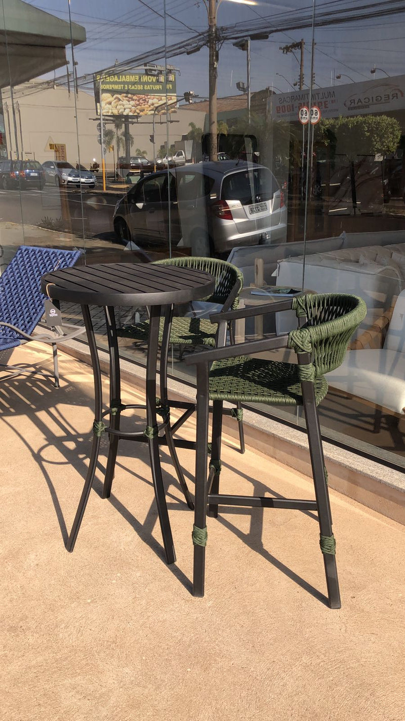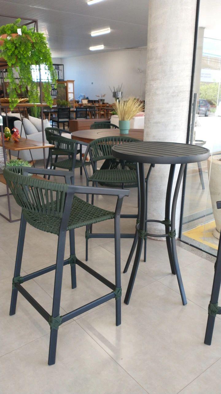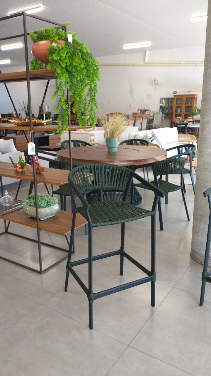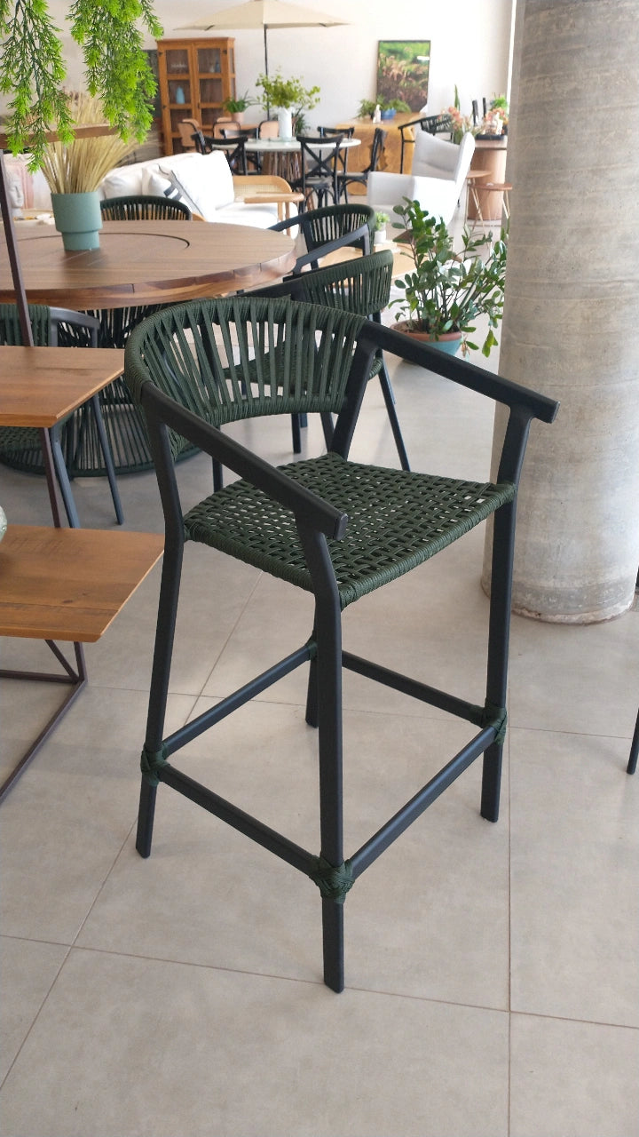 Taburete de Aluminio Negro con Cuerda Náutica Verde Musgo