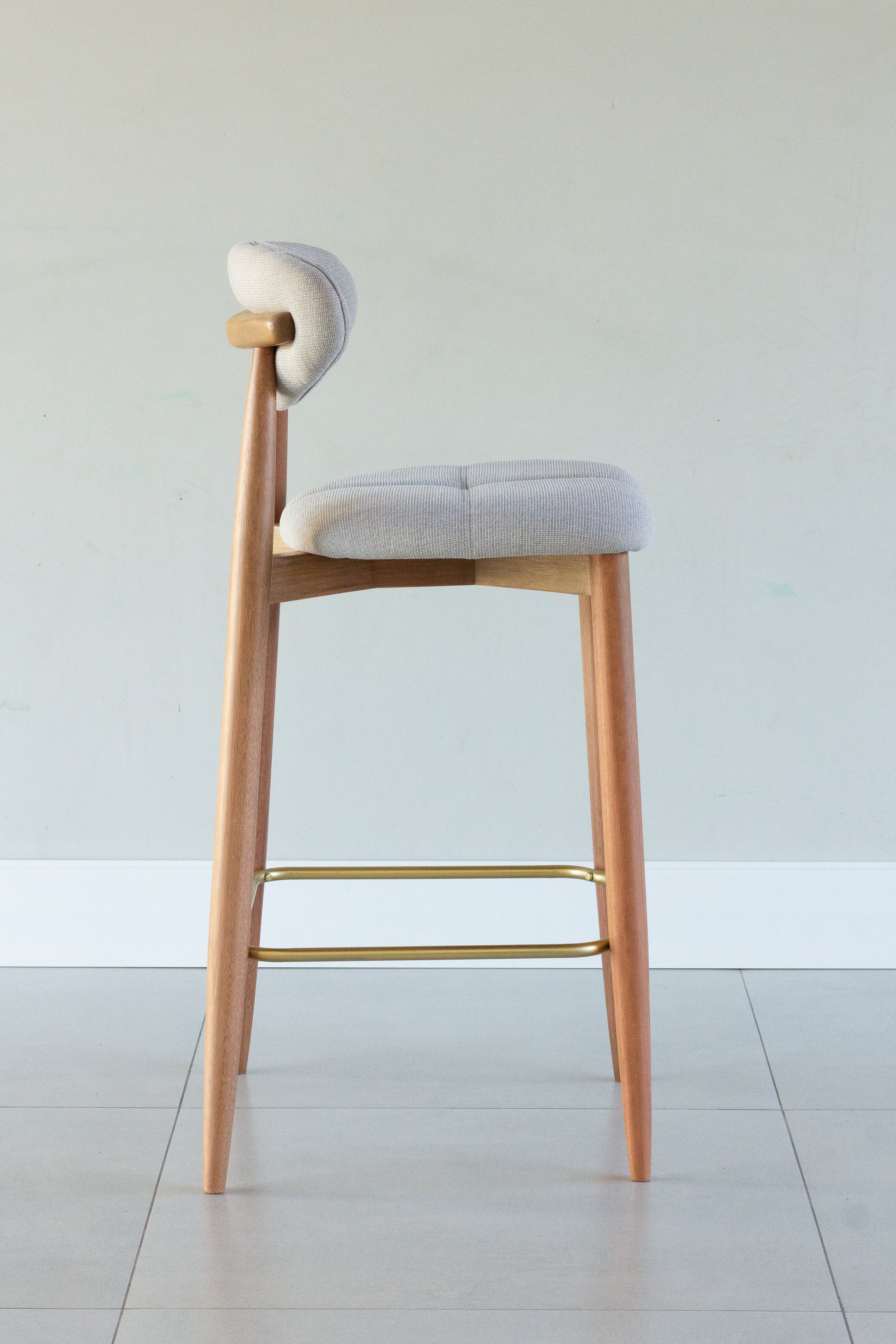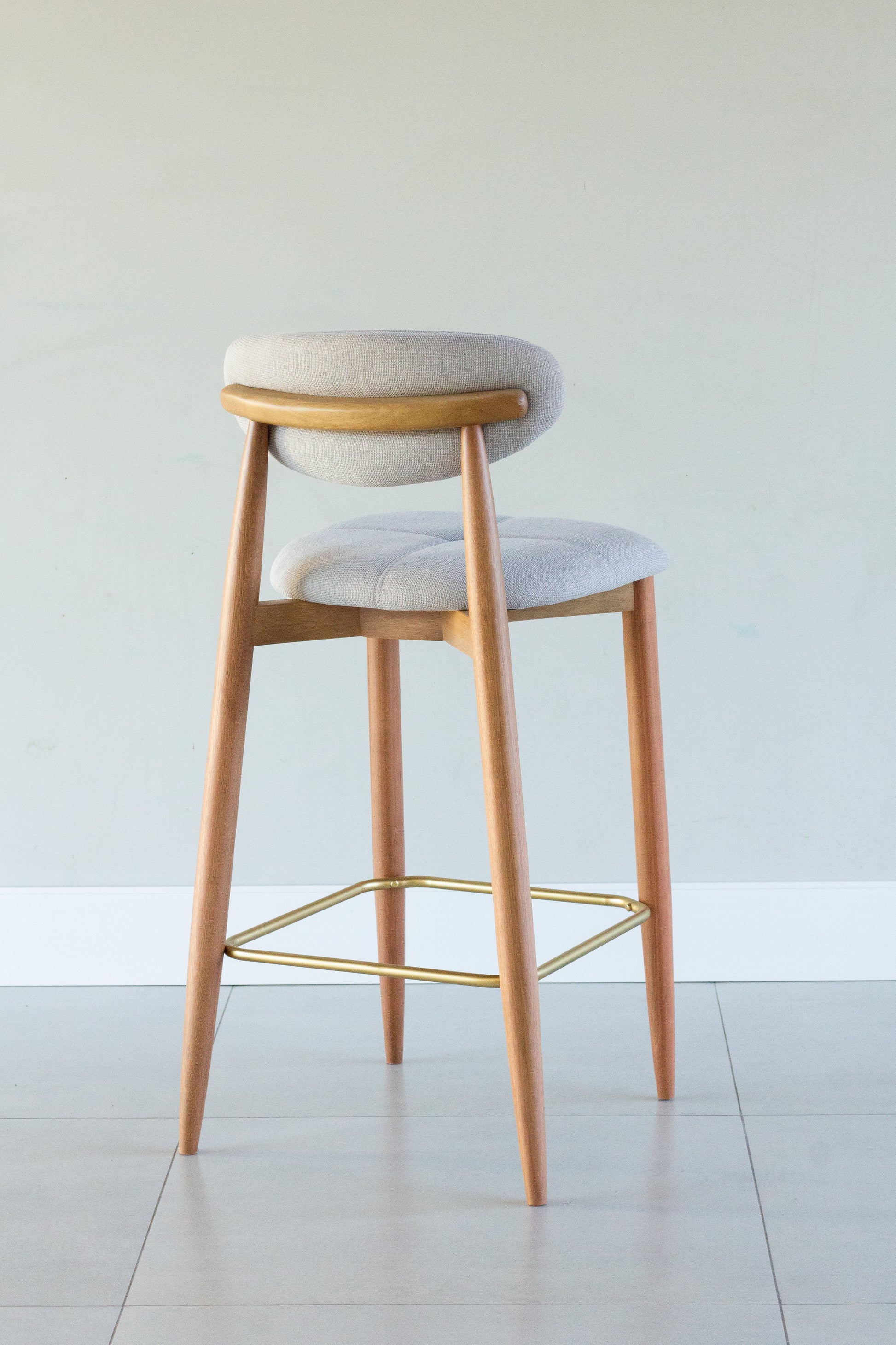 Banqueta Ana Madeira 60 Metal Dourado Assento Tecido BS709