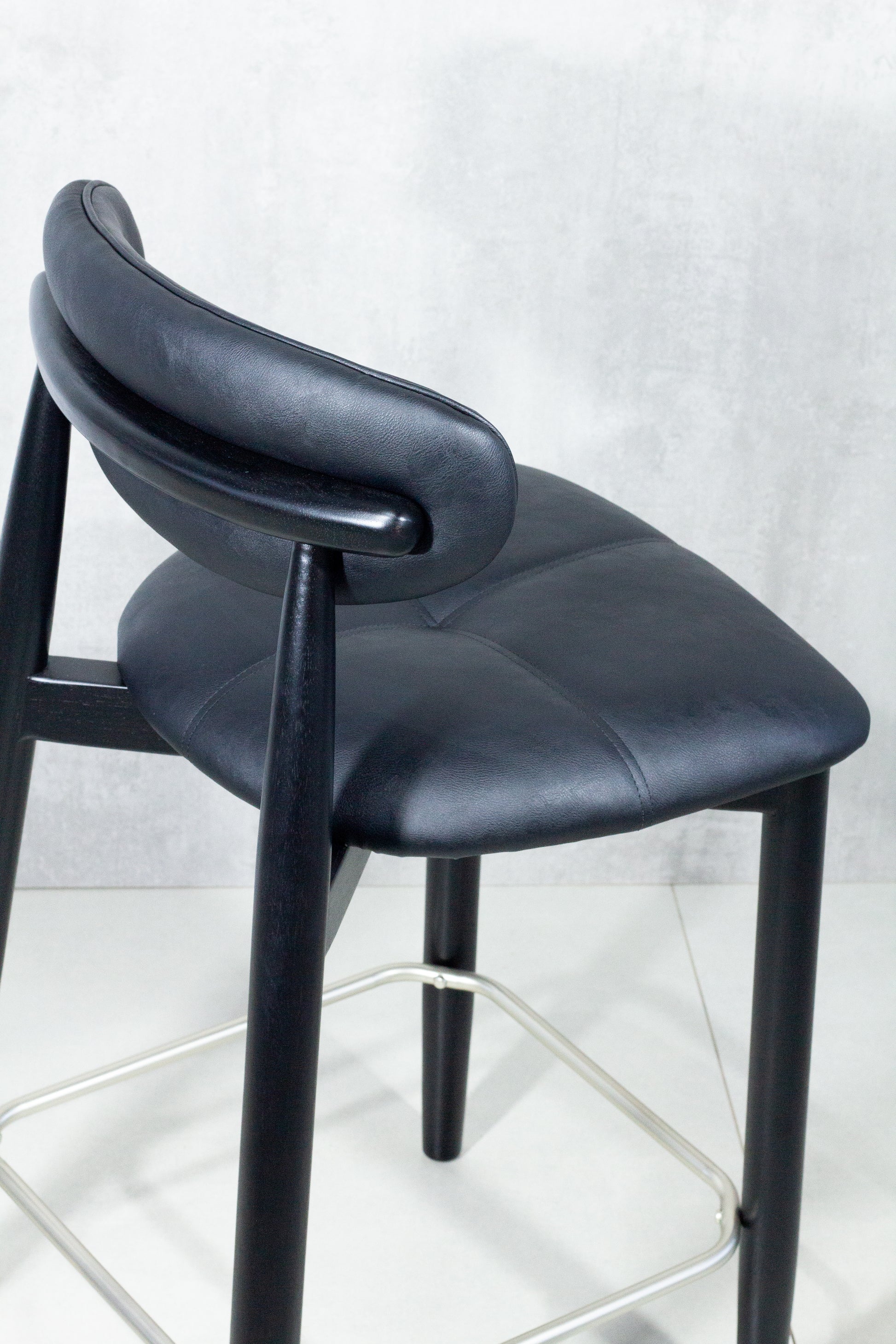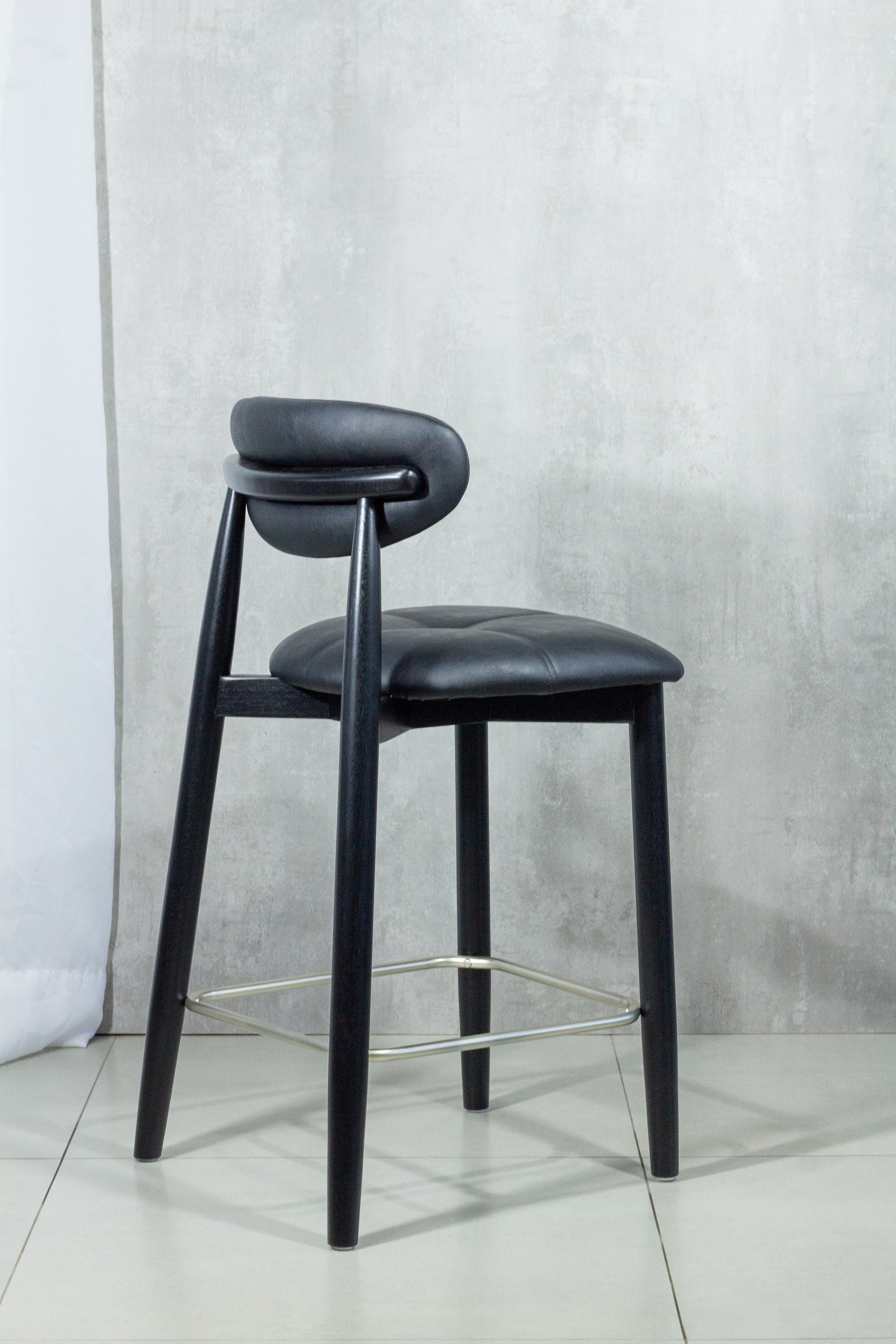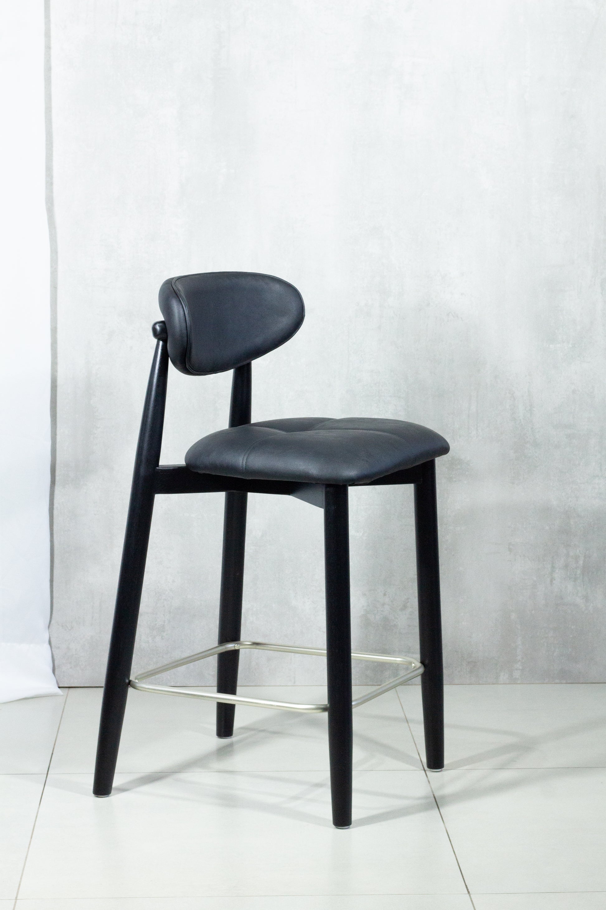 Banqueta Ana Madeira Ebano Metal Champagne Assento Couro AB1016
