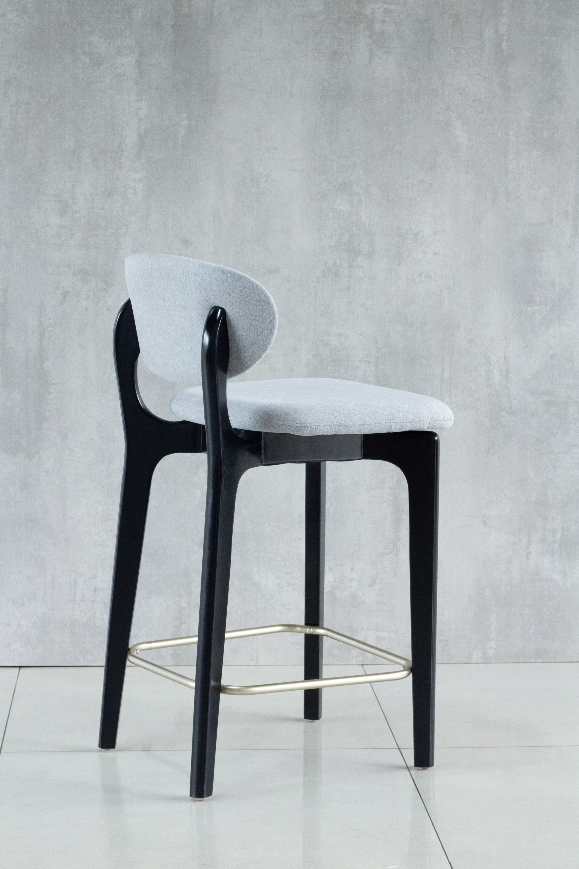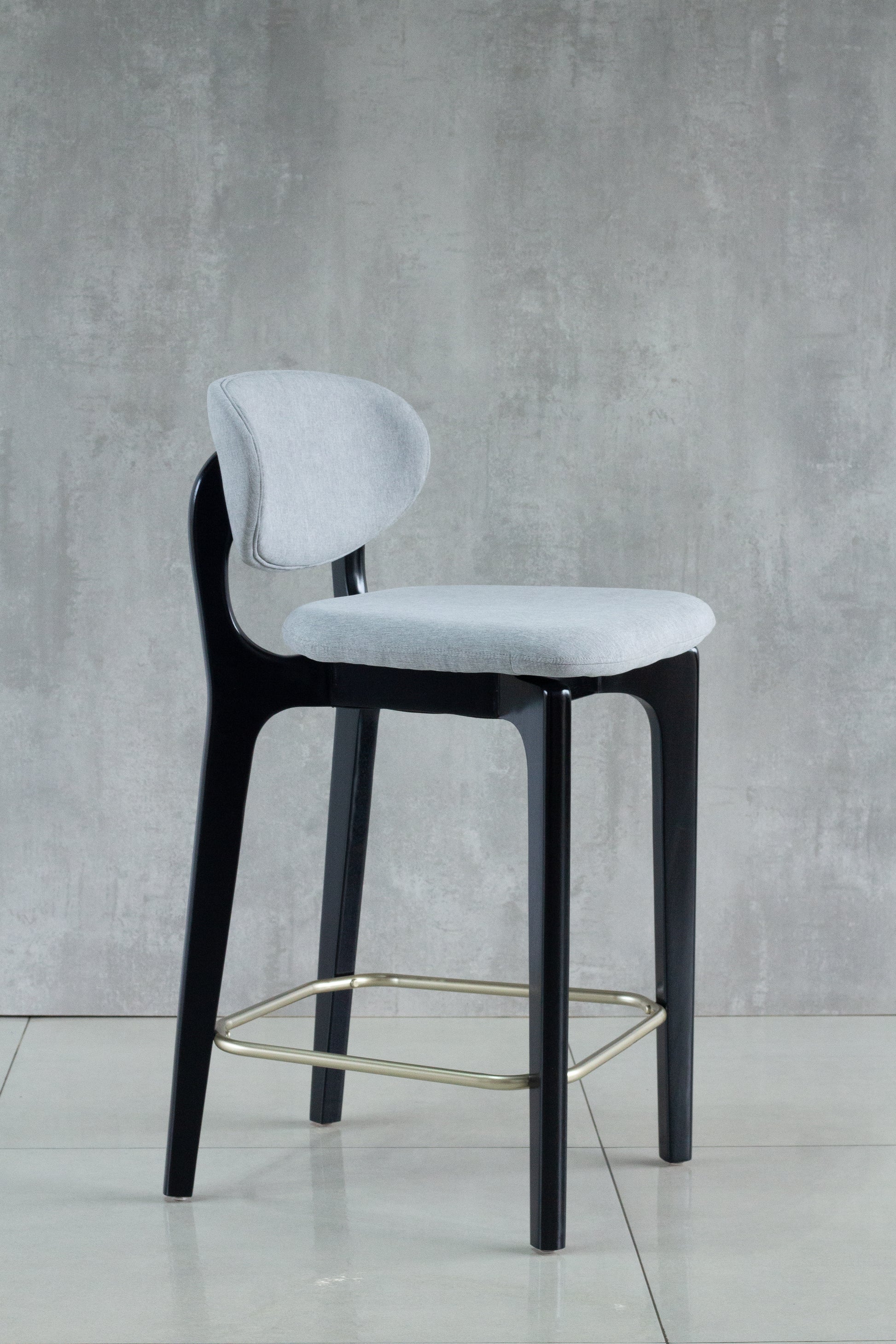 Banqueta Elis Madeira Ebano Metal Dourado Assento Tecido BR6001