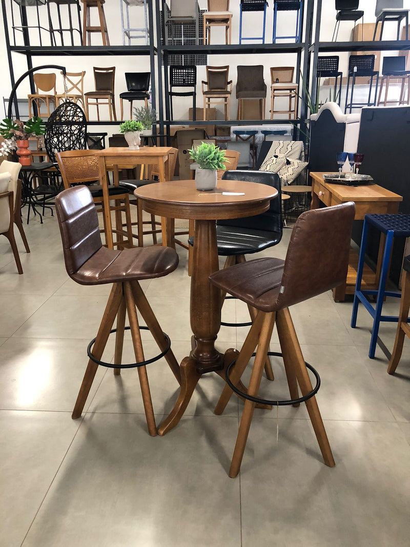 Ellen Taburete Base Madera Asiento Giratorio Tapizado PU Negro