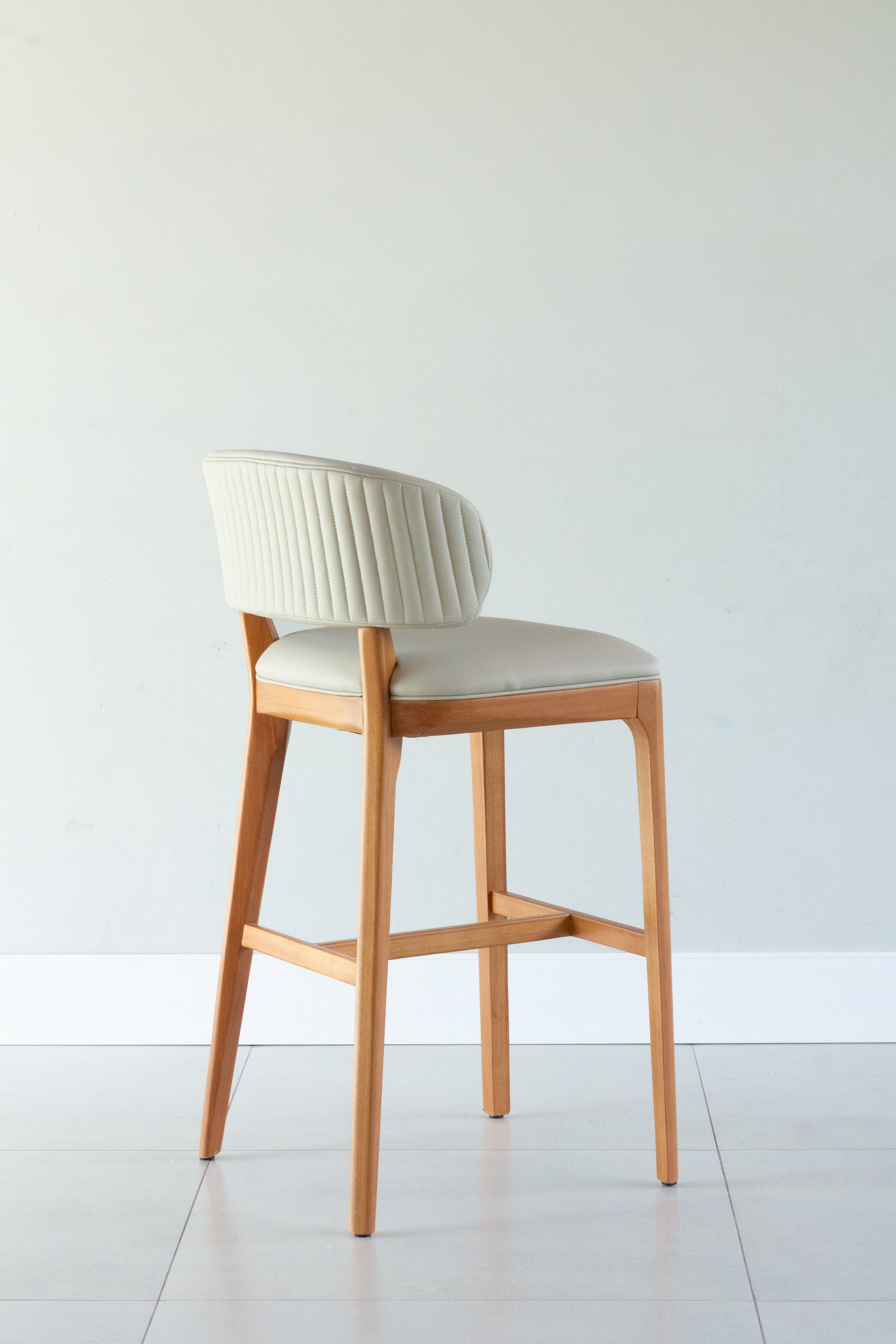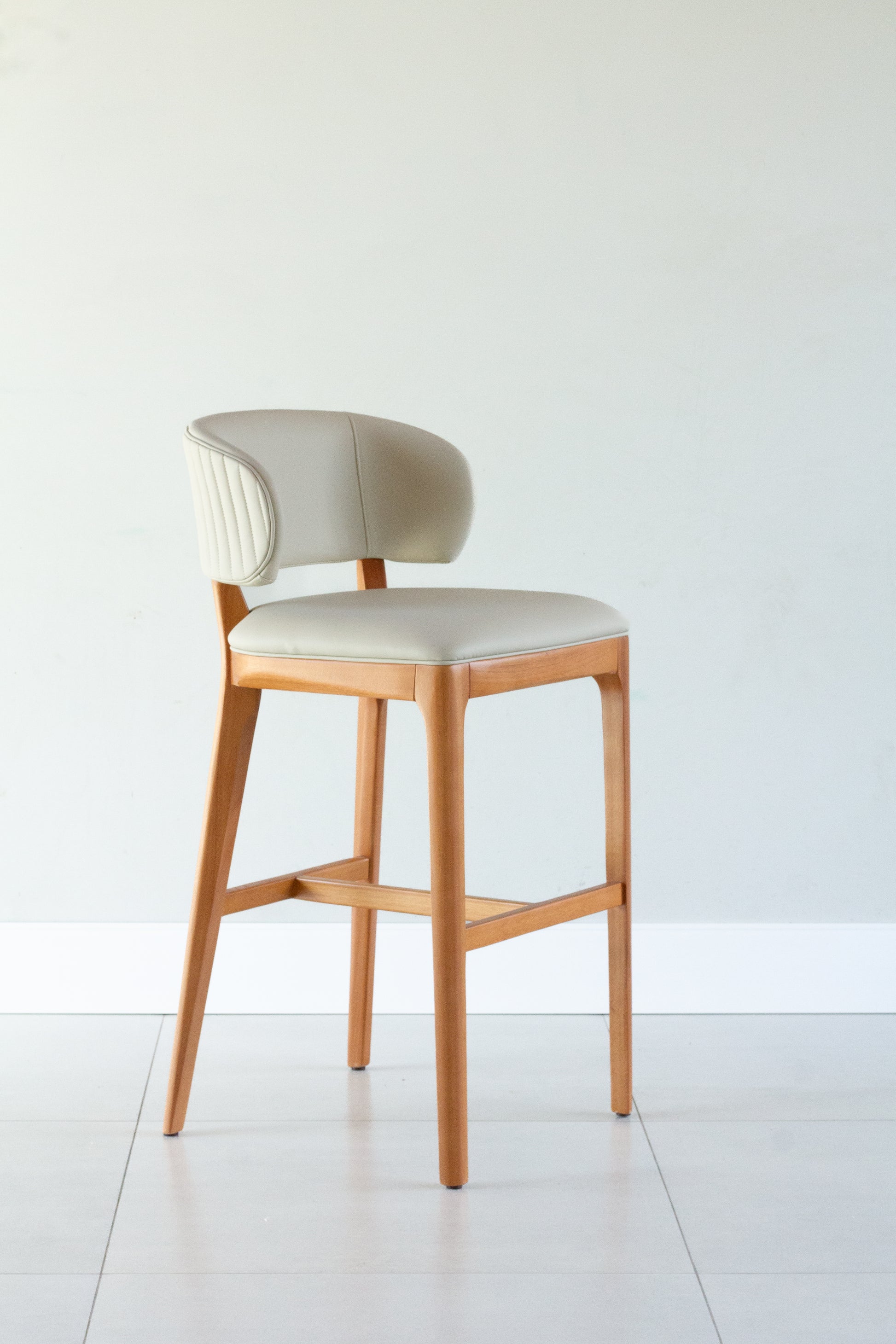 Banqueta Ester Madeira Damasco Assento Couro AQ8014