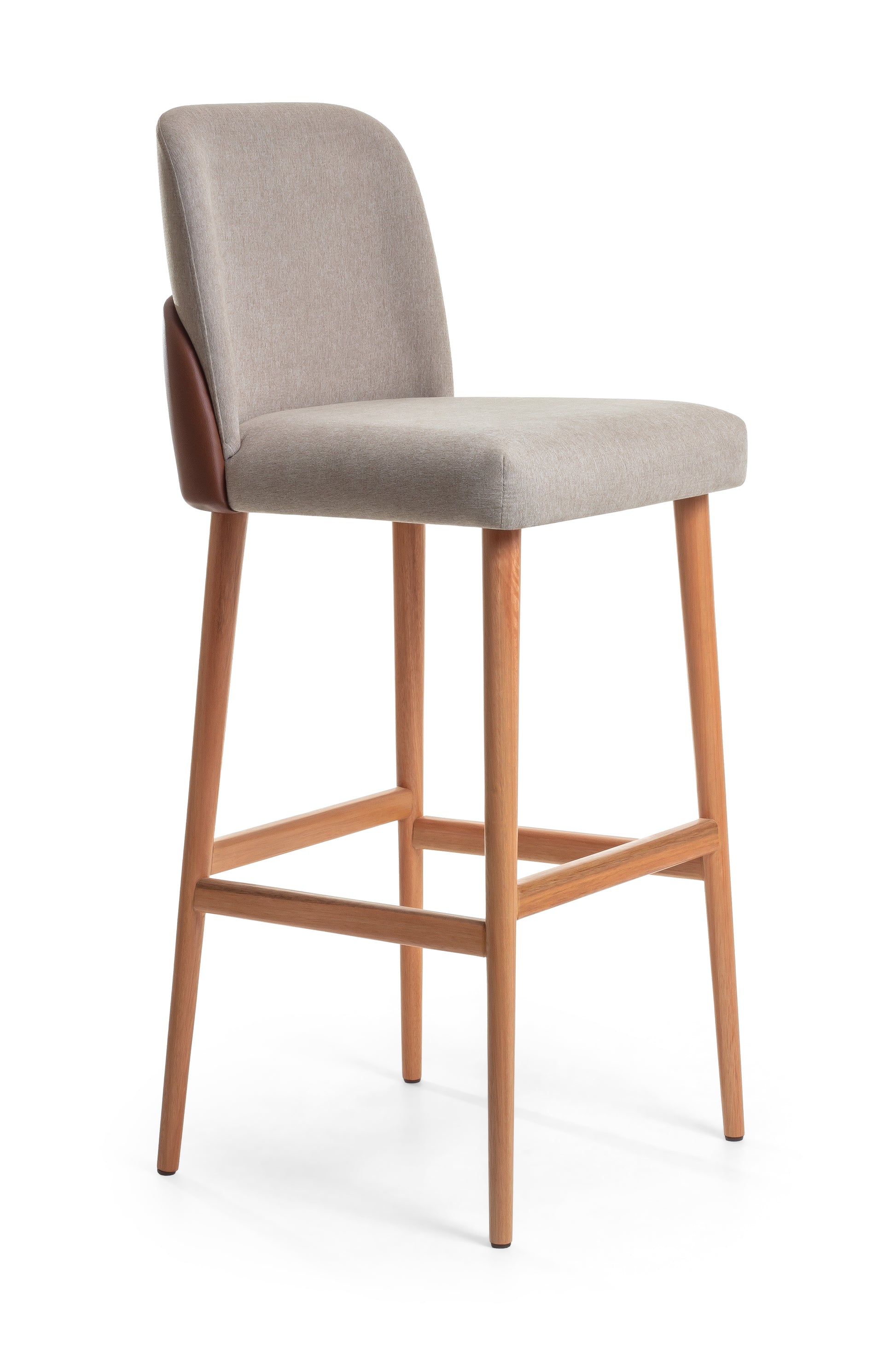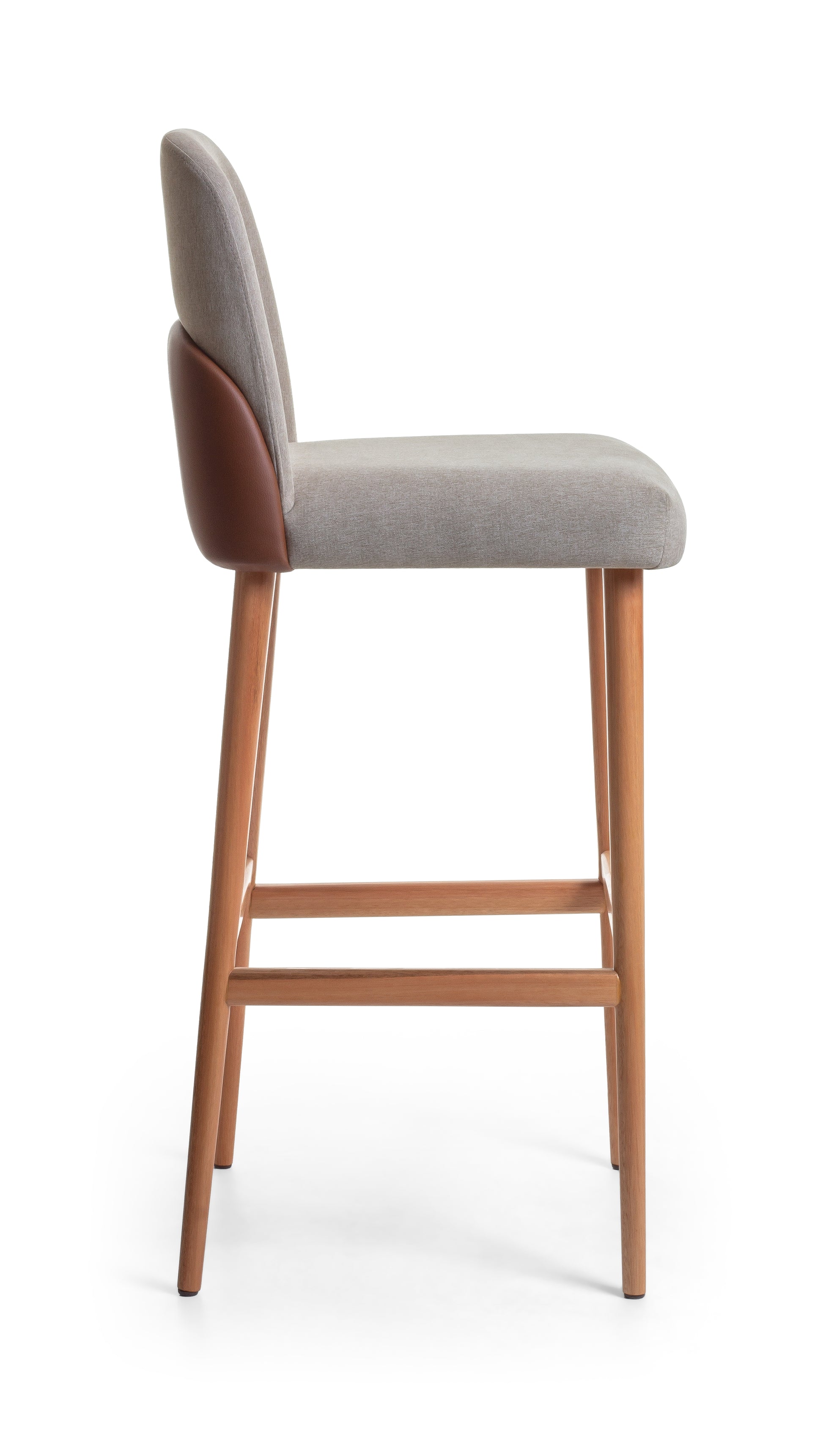 Banqueta Laura Madeira 60 Detalhe em Couro BR6027 Assento Tecido BR6000