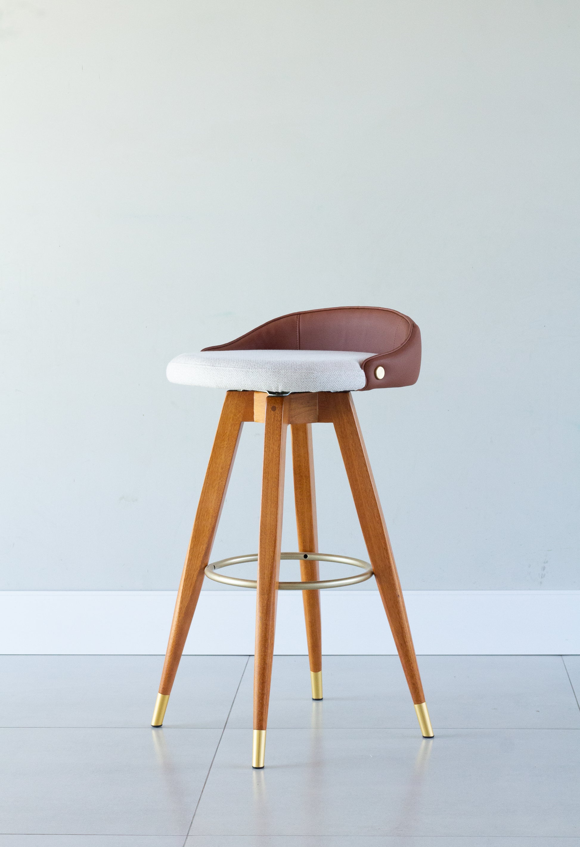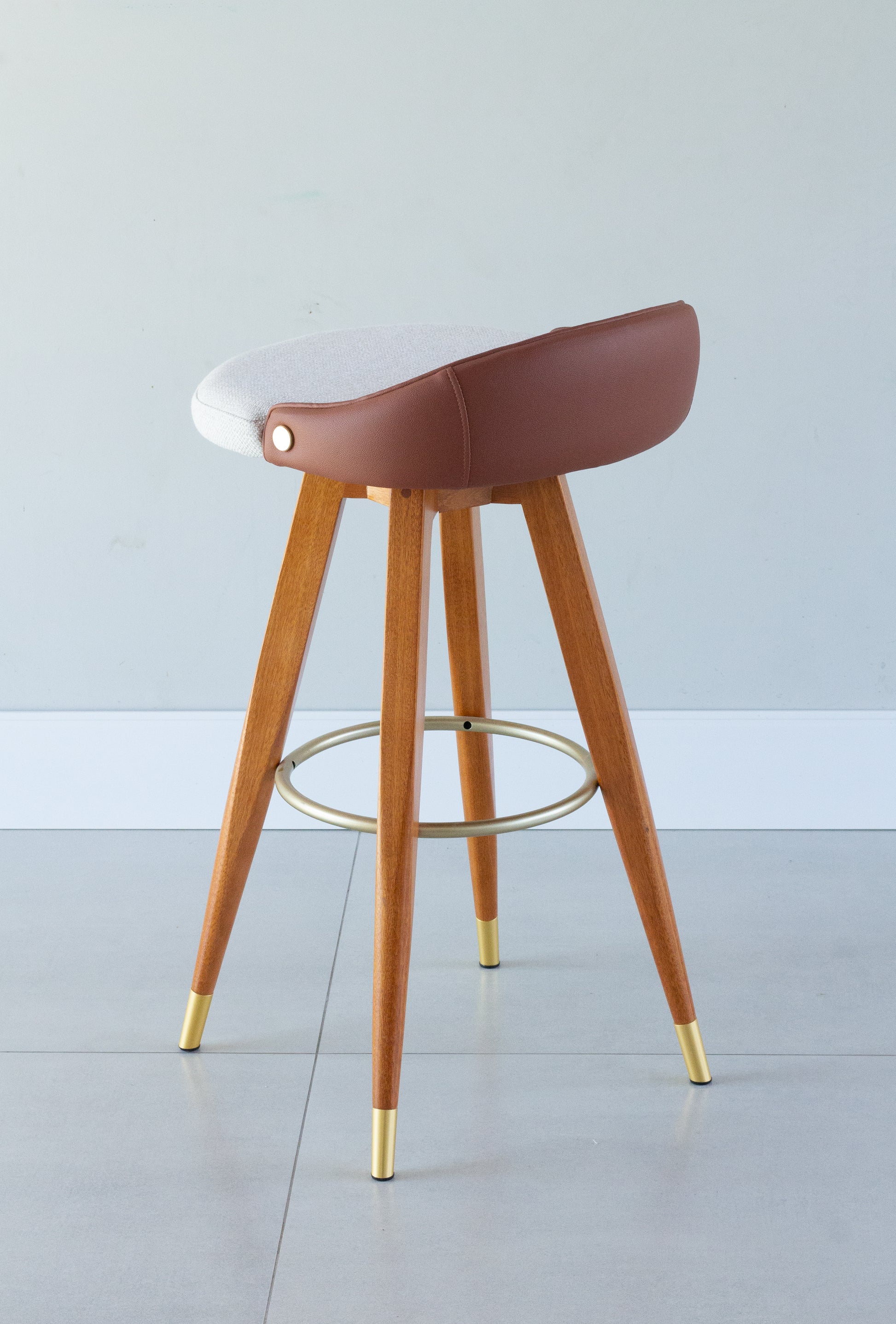 Banqueta Maya Madeira 60 Metal Champagne Assento Estofado AB1030 Encosto AB1016