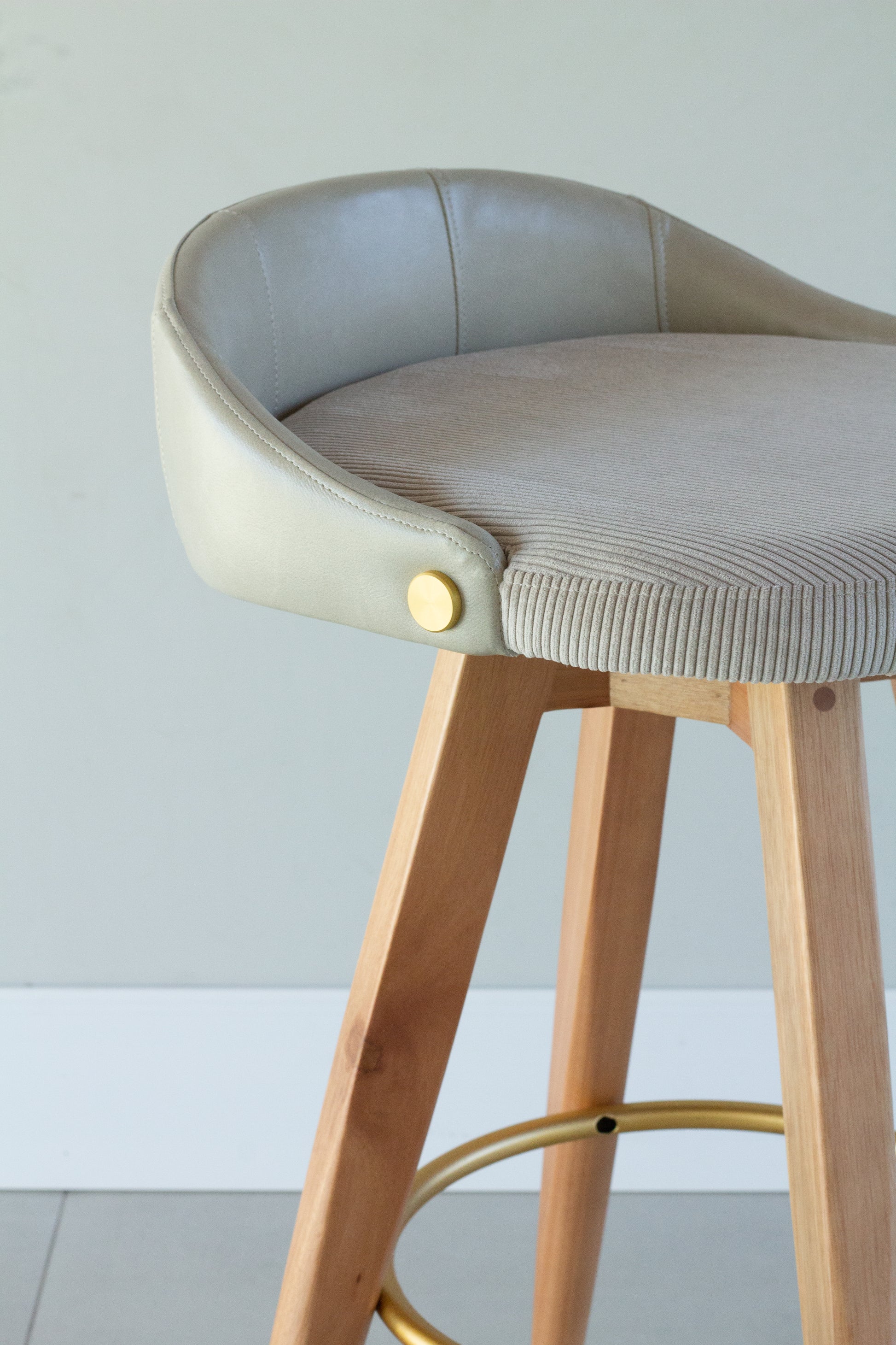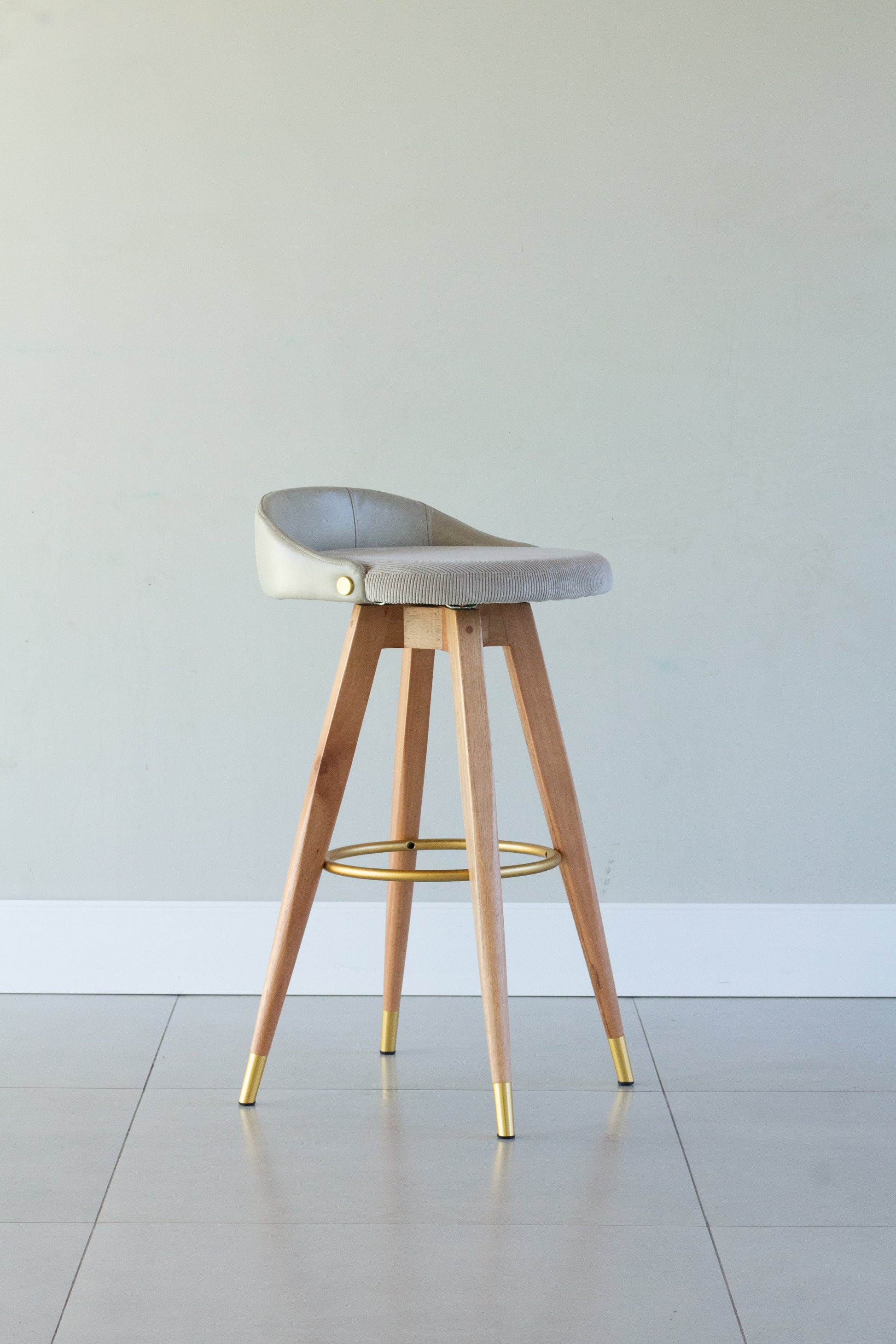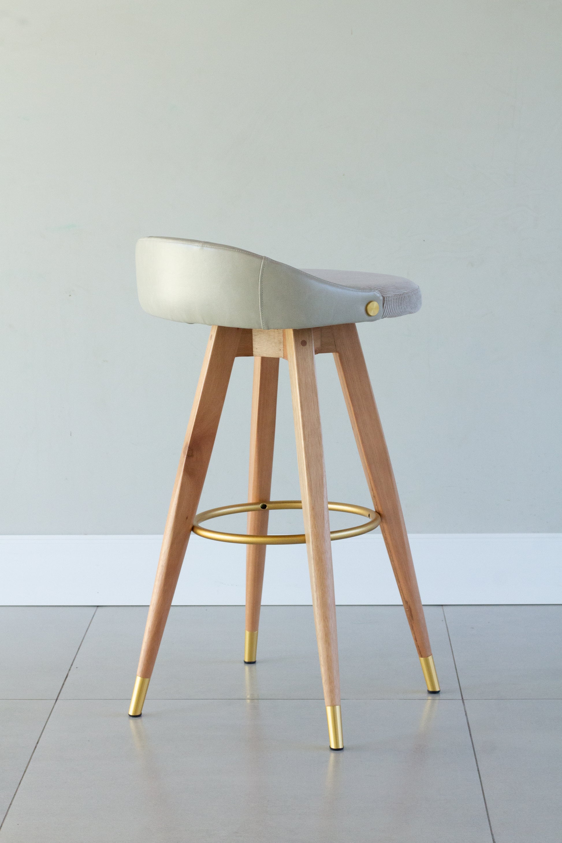 Banqueta Maya Madeira 30 Metal Dourado Assento Estofado AA9003 Encosto AA9010