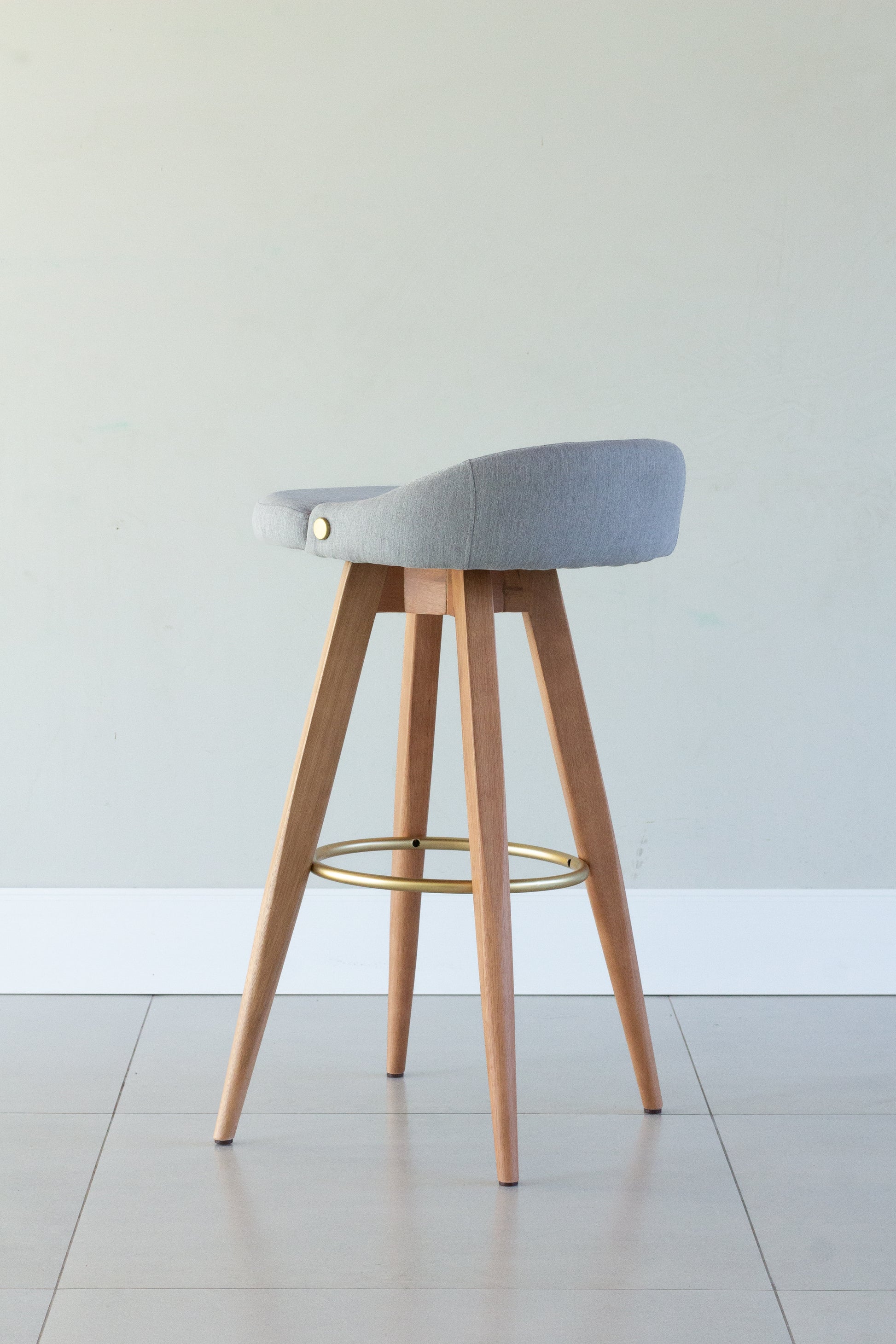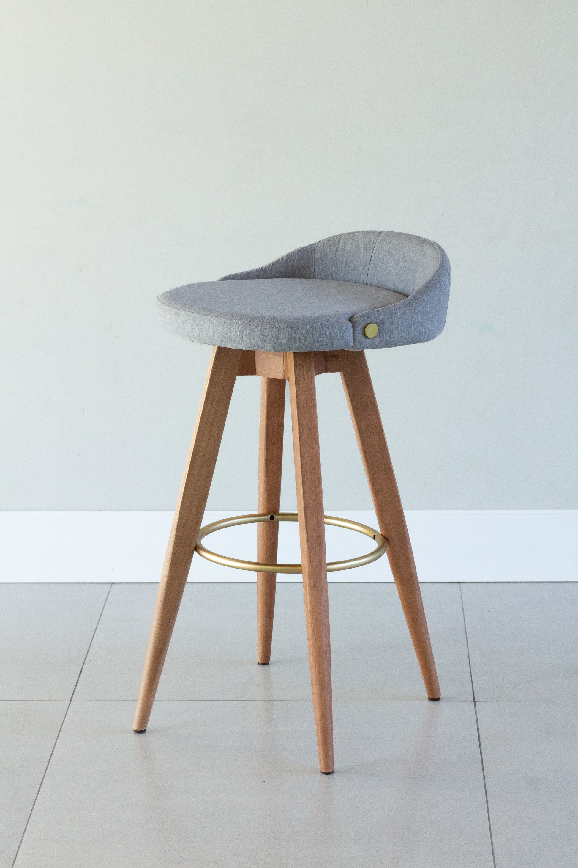 Banqueta Maya Madeira 30 Metal Dourado Assento Estofado BR6001