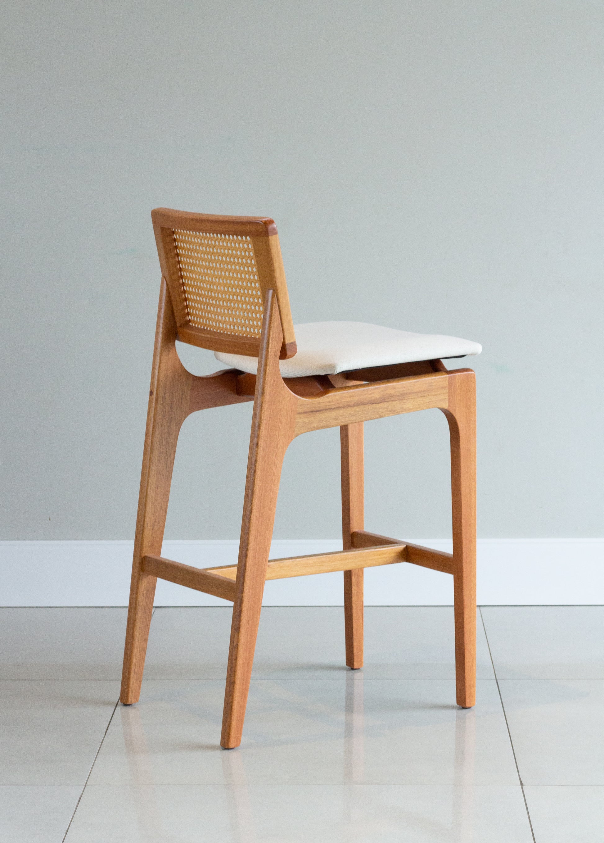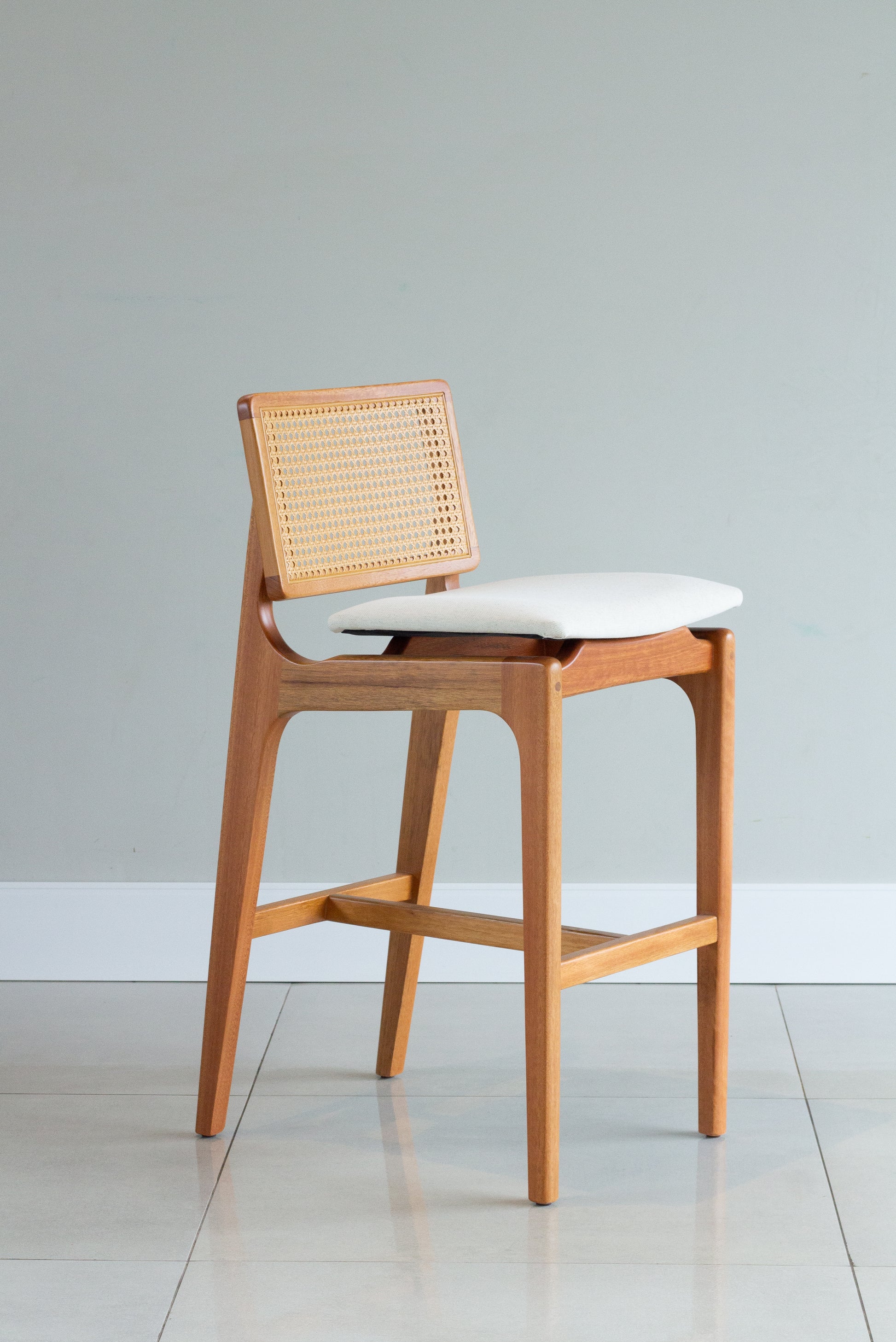 Banqueta Olivia Madeira 60 Encosto com palha sextavada Assento Estofado BS703