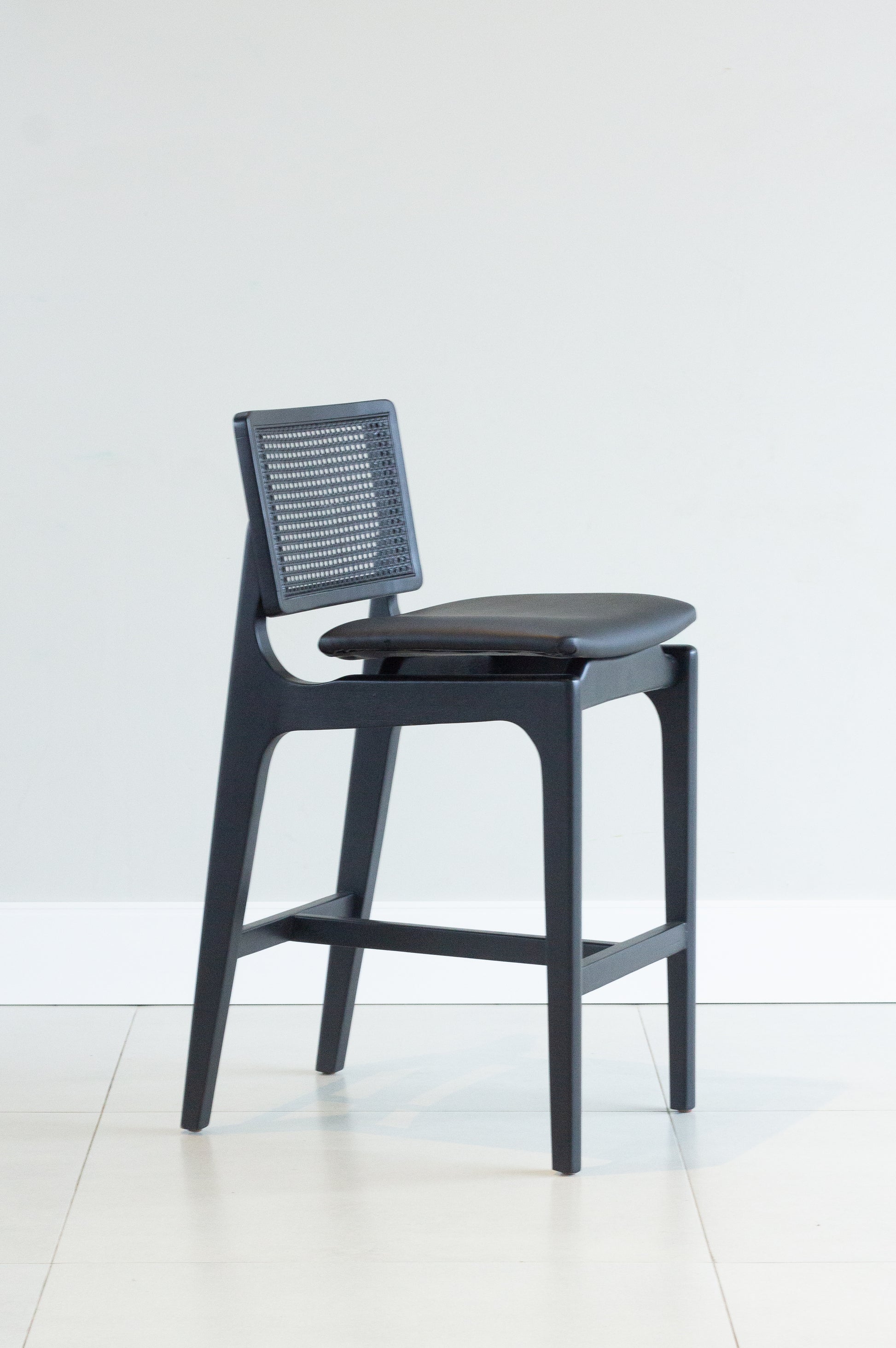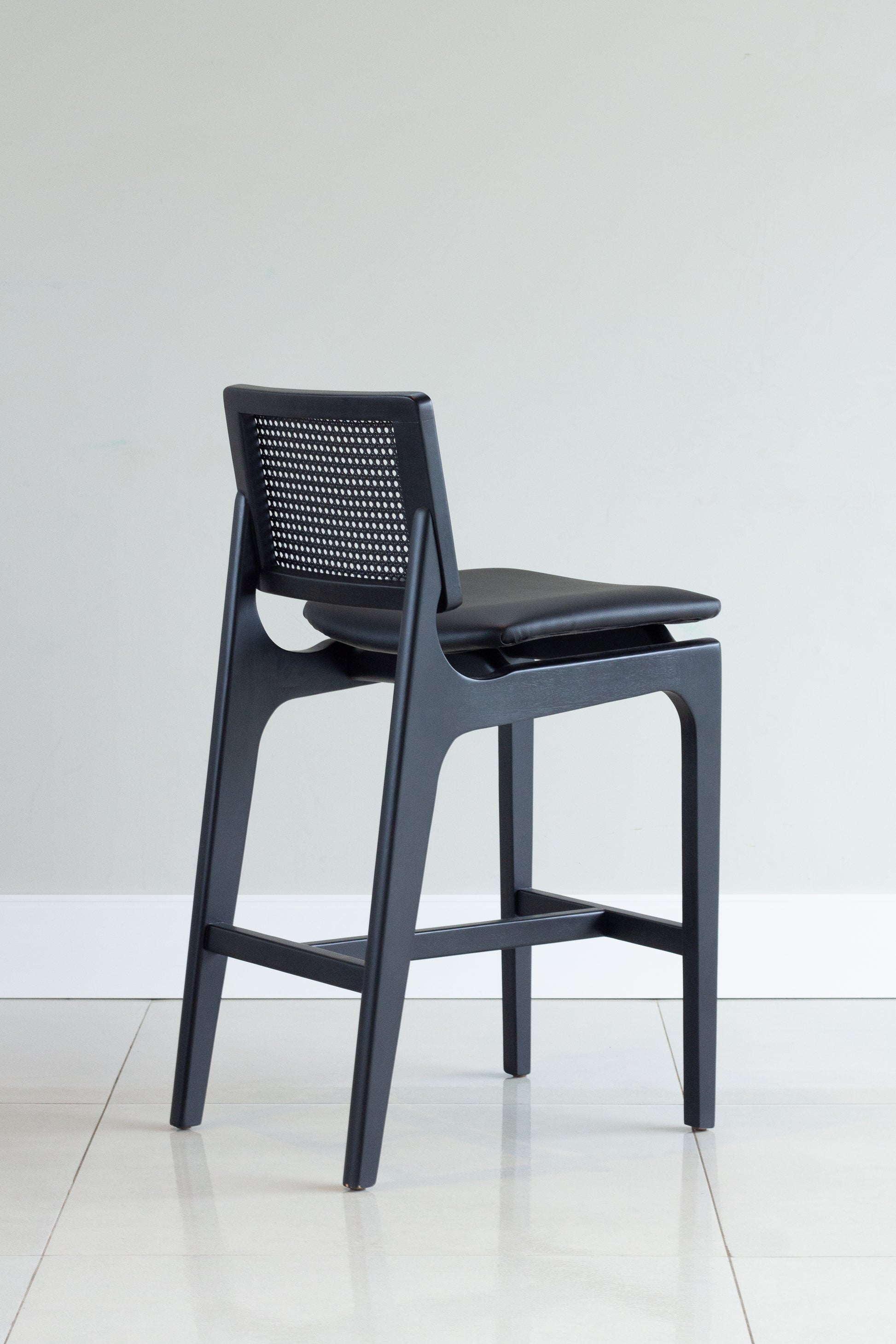 Banqueta Olivia Madeira Ebano Encosto com palha sextavada Assento Estofado AB1017