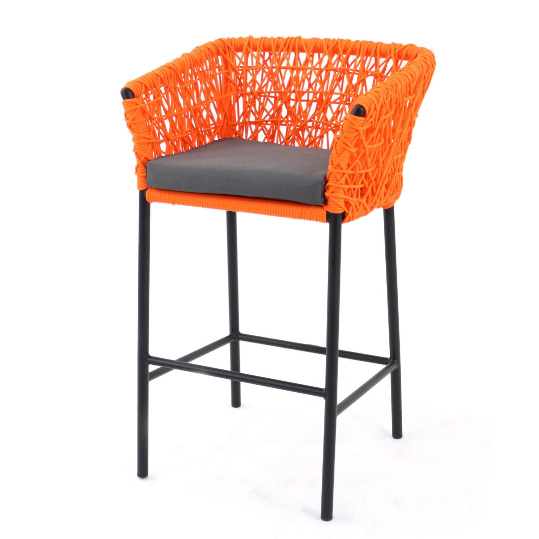 Taburete de Aluminio Panamá Cuerda Náutica Negra Color Naranja Asiento Tapizado en Tela Quaker Gris - Toth Móveis Presidente Prudente