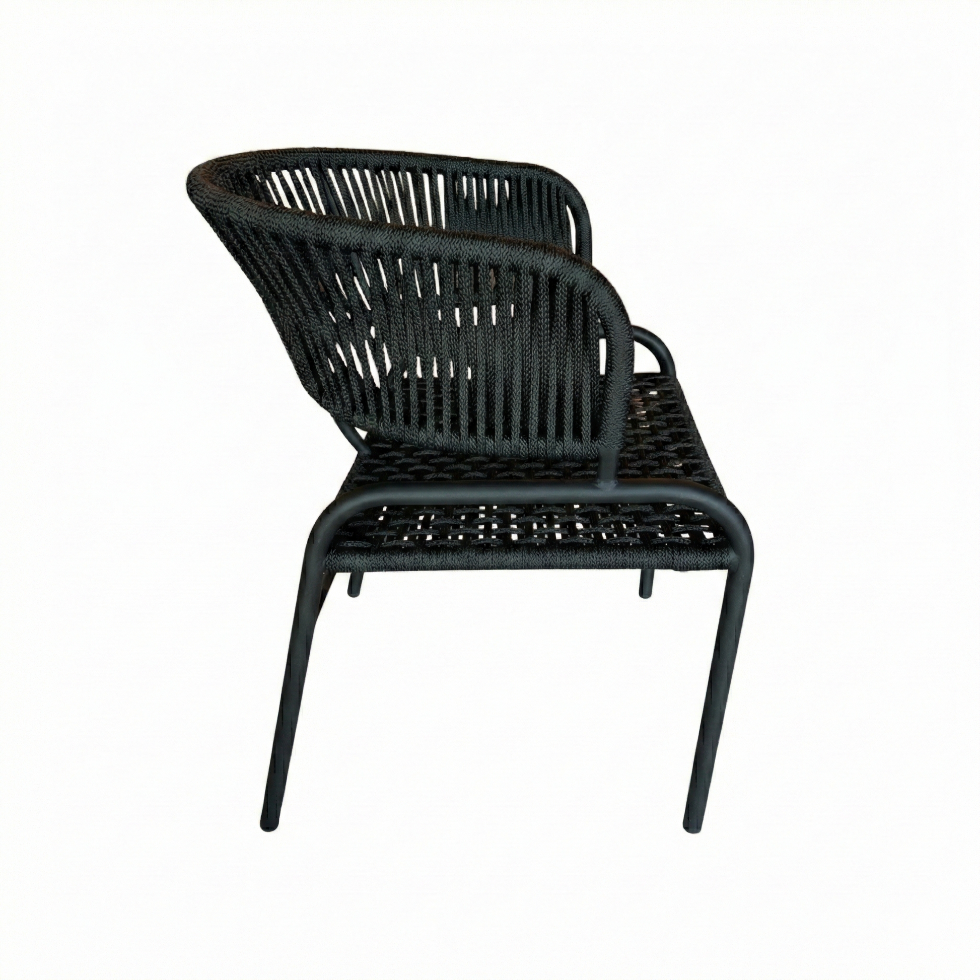 A Cadeira Outdoor destaca-se pela clareza estrutural e leveza visual. Seu design moderno reduz a forma ao essencial, eliminando ornamentos para valorizar a linha e a ergonomia. Uma peça de silhueta limpa, que oferece suporte confortável através da tensão precisa da trama, integrando-se ao espaço sem dominá-lo.