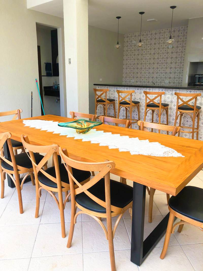 Mesa de comedor Micheli 200x100 cm con tapa de madera maciza y base de hierro - 6 plazas