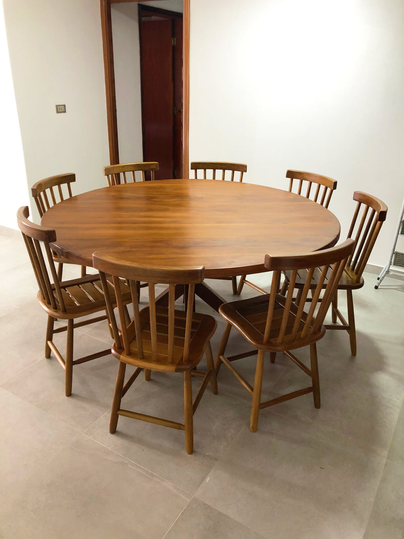 Mesa de Comedor Redonda Monaco 140cm Madera Maciza Rústica Peroba-Rosa - Tienda de Muebles Toth Presidente Prudente