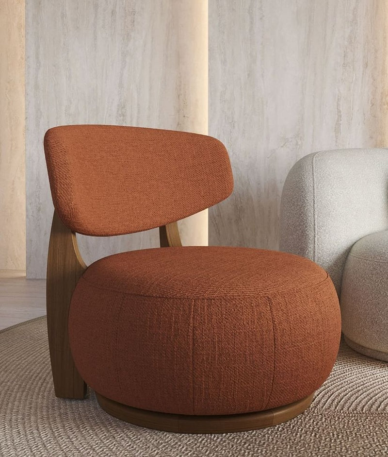 Sillón Azeri Base Fija Respaldo y Asiento en Madera Canela Tapizado en Tela 141 - Toth Loja de Móveis Presidente Prudente