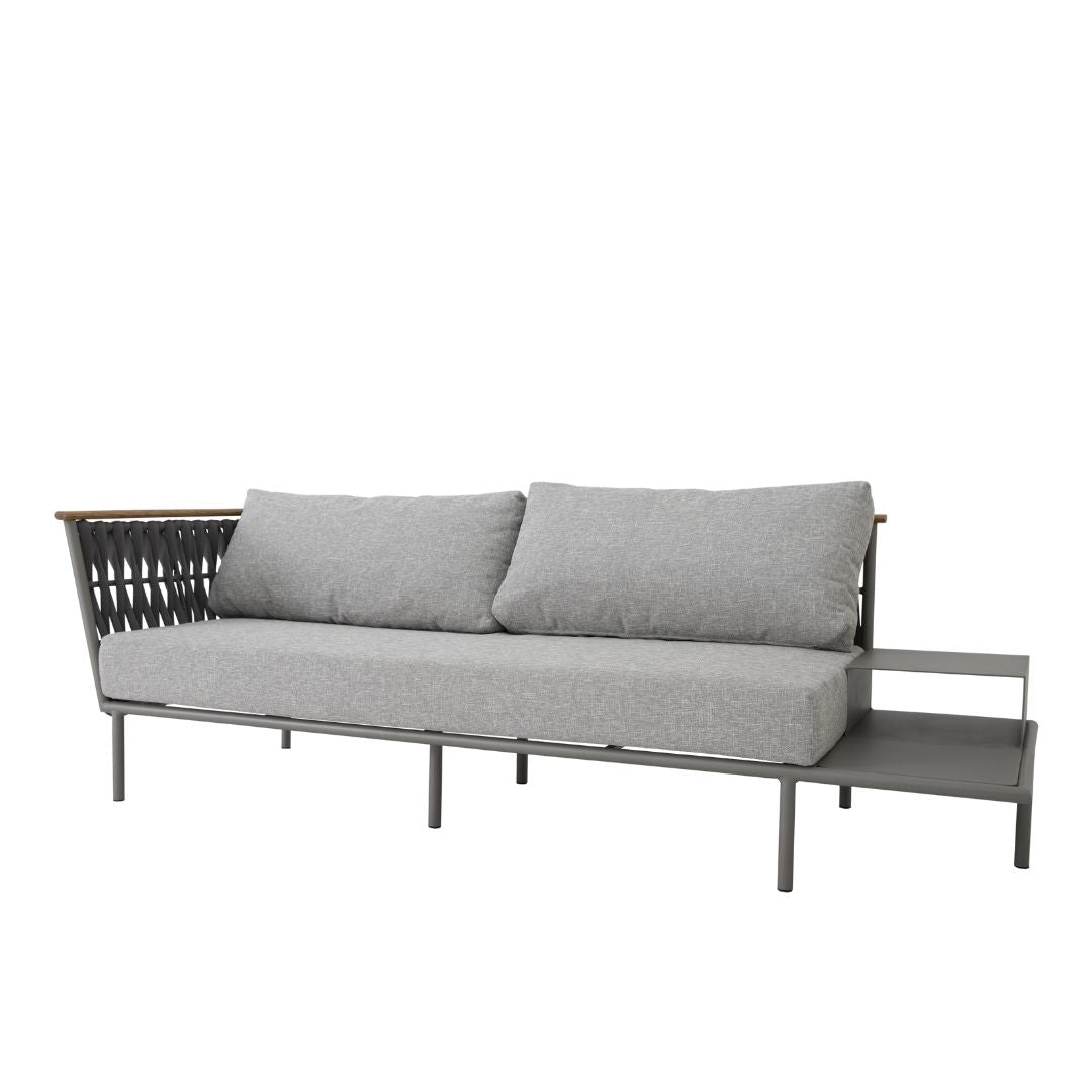 Sofá Lazio con Bandeja Madera Freijó Aluminio Color Gris Tejido Náutico Color Negro Respaldo y Asiento Tapizado en Tela Pelícano Gris - Toth Móveis Presidente Prudente
