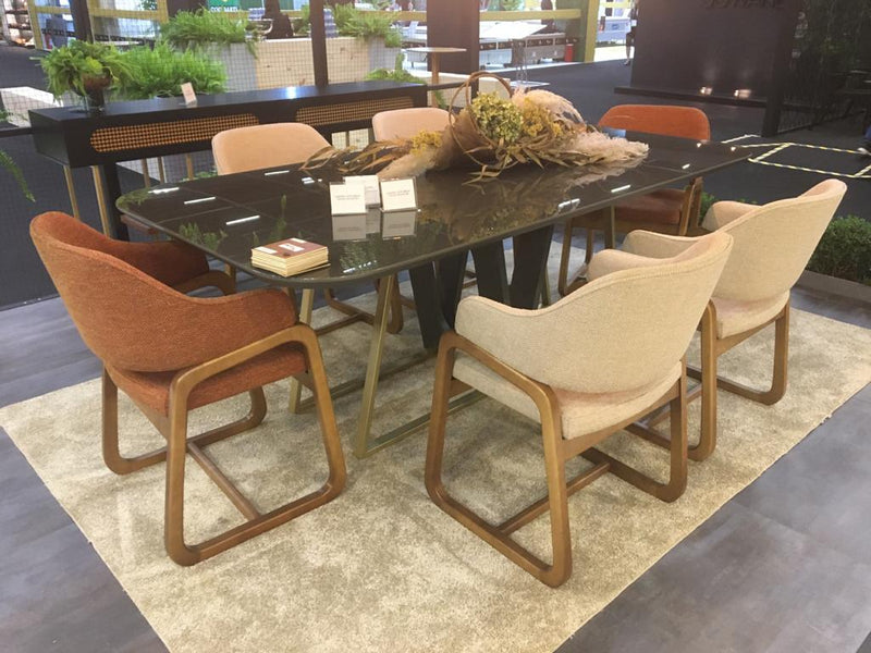 Cadeira Loop Madeira Amêndoa e Tecido Stone Terracota