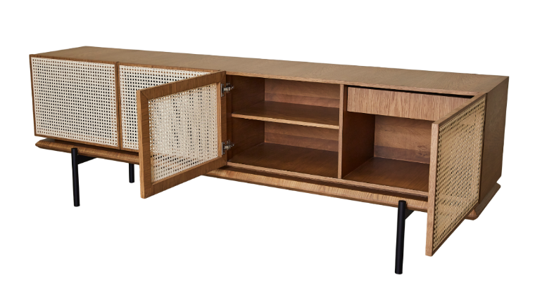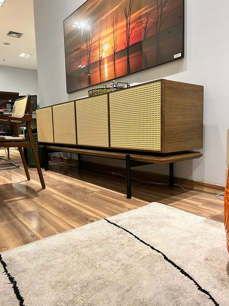 Balcão Downtown Madeira Cinamomo Portas em Palha 220x45x79cm 4 Portas