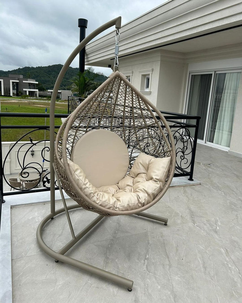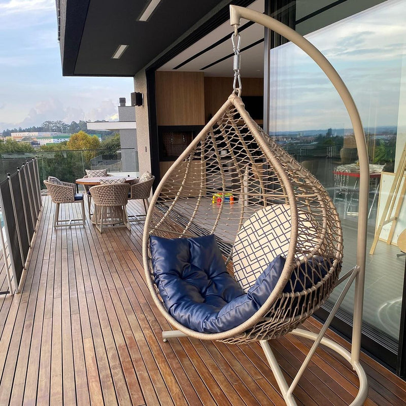 Banco Balanço Gota Alumínio Cor Preto Corda Náutica Cor Preto com Suporte