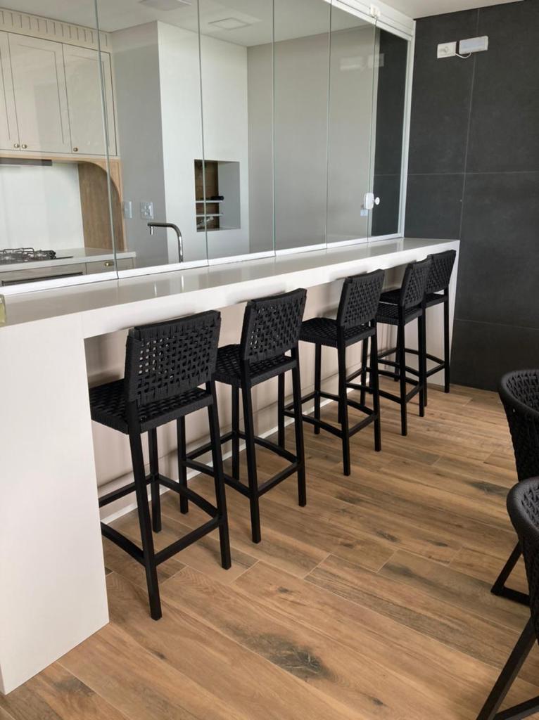Banqueta Ametista Alumínio Cor Preto e Corda Náutica Cor Areia