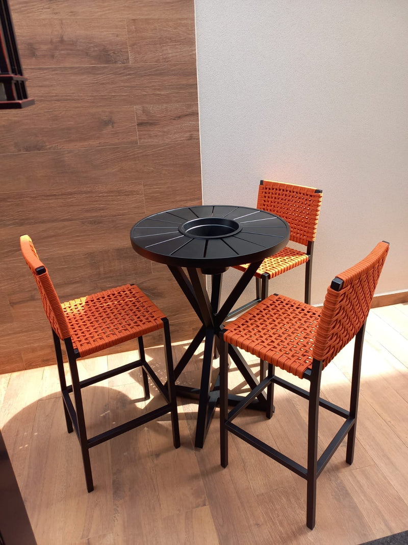 A Banqueta Outdoor explora a verticalidade com rigor geométrico. Seu design moderno articula uma silhueta esbelta e leve, projetada para oferecer suporte ergonômico sem criar barreiras visuais no ambiente. Uma peça que equilibra a função de assento elevado com uma estética escultural e limpa.