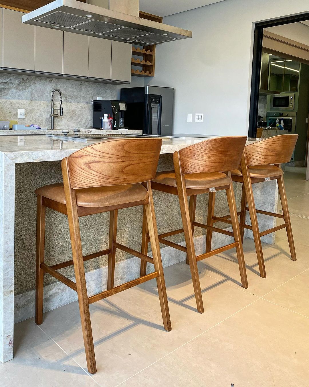 Banqueta Zaki Madeira Assento Estofado Tecido Facto Conhaque 890A