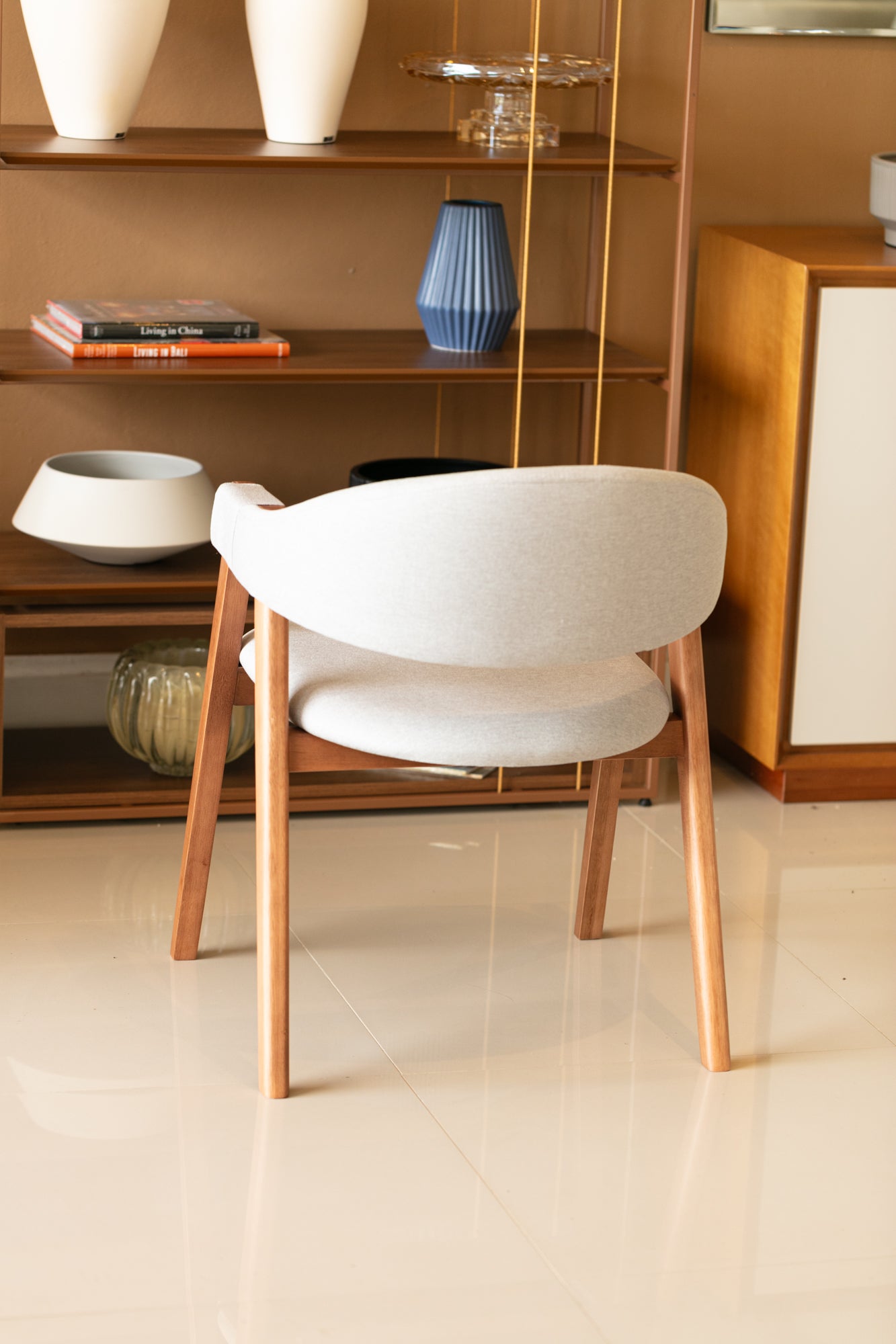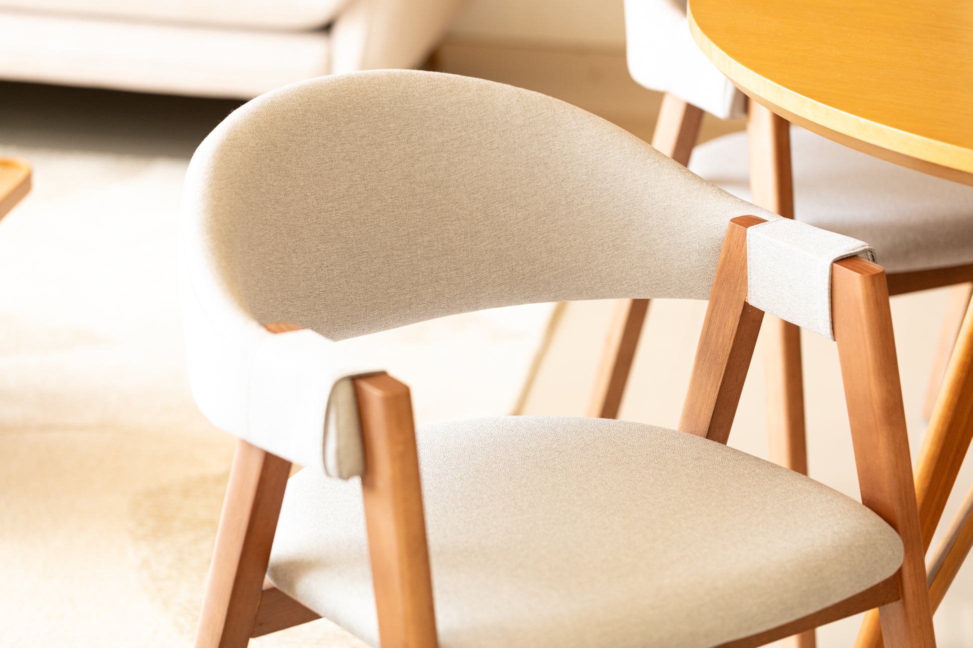 estrutura em madeira maciça e assento multilaminado estofado