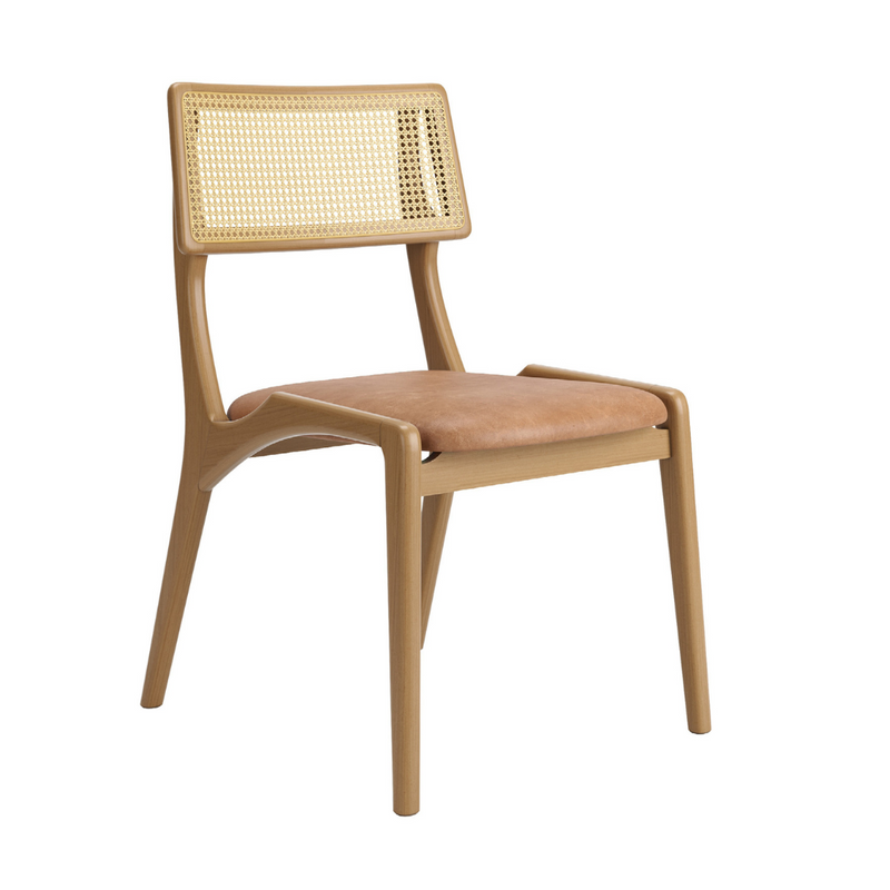 Cadeira Aspen Madeira Cinamomo Encosto Palha e Assento Estofado Tecido 141