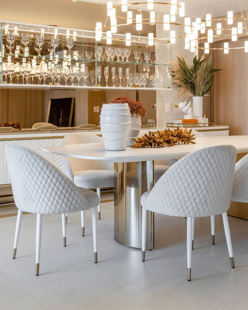 Aço Carbono Pintado Branco Detalhe Dourado Encosto e Assento Estofado Tecido 10020F