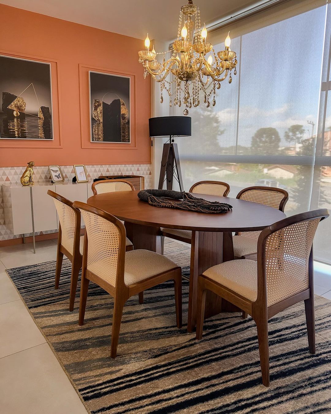 Cadeira Isis Encosto Palha Sextavada Madeira 20 Assento Estofado Tecido AB1020 - Toth Loja de Móveis Presidente Prudente