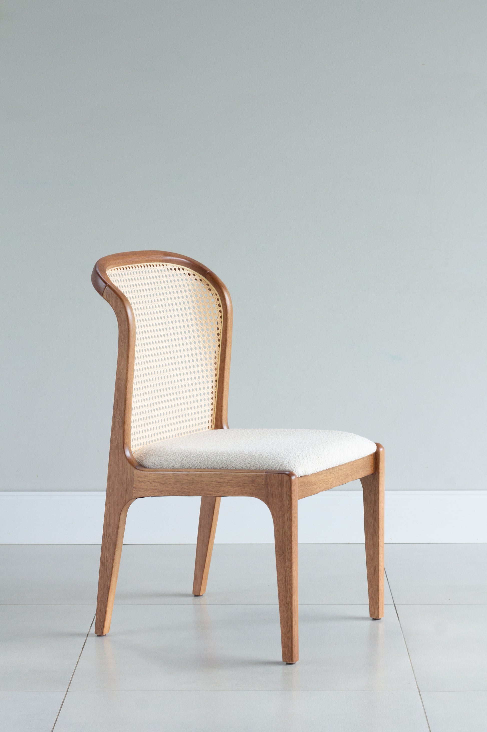 Cadeira Jasmine Madeira 60 Detalhe em couro AQ8017 Assento Estofado Tecido A+05