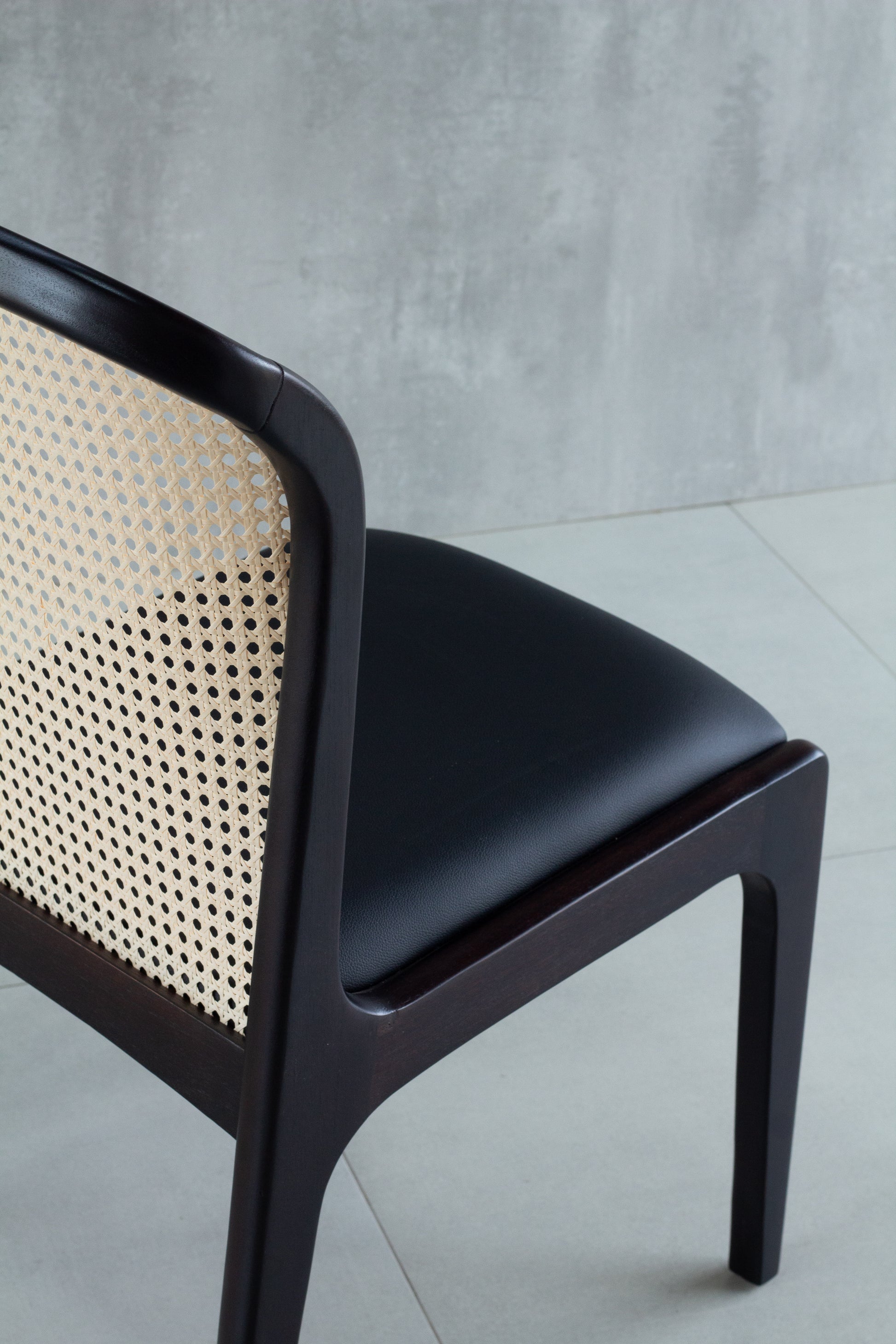 Cadeira Isis Encosto Palha Sextavada Madeira Ebano Assento Estofado Tecido AB1017