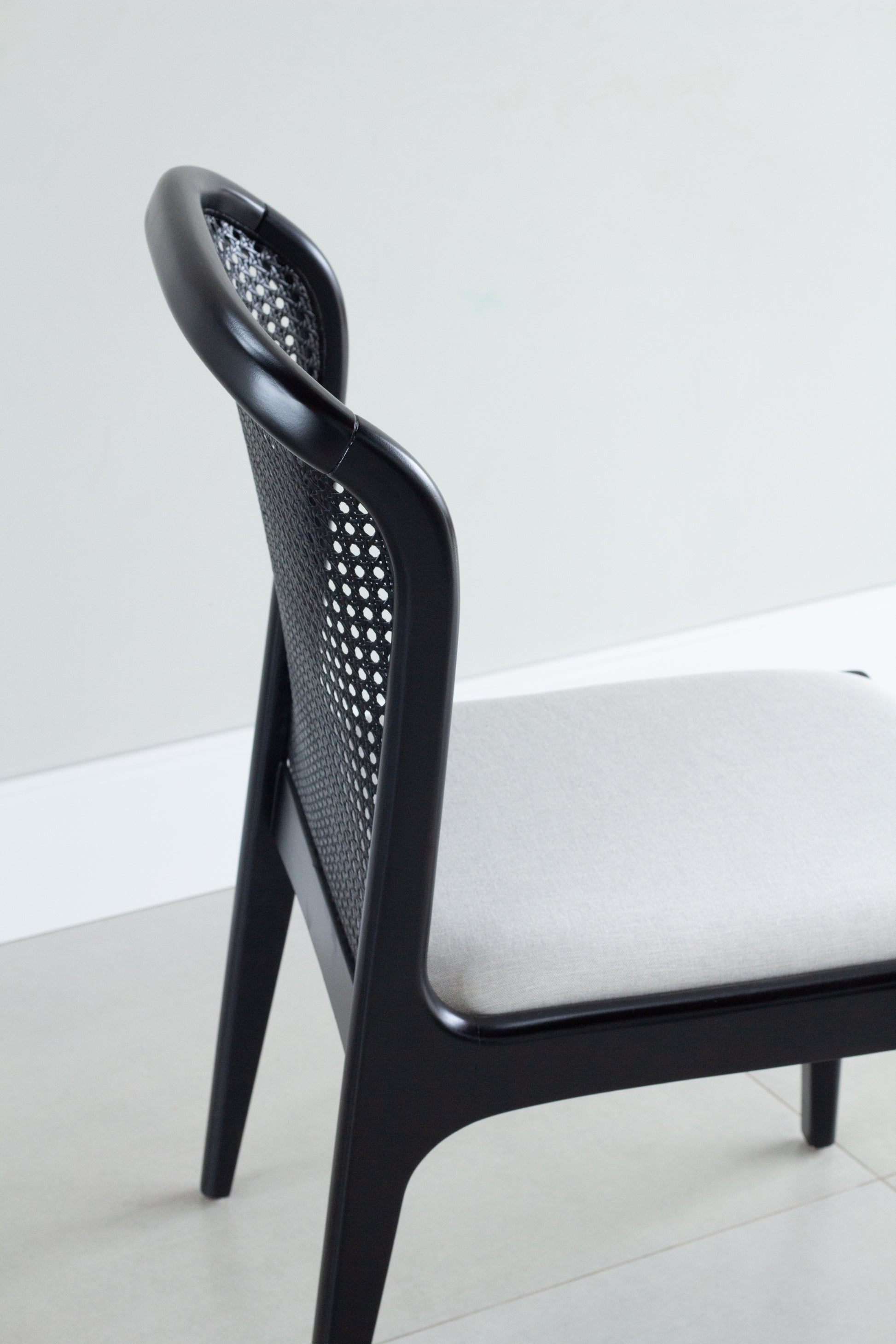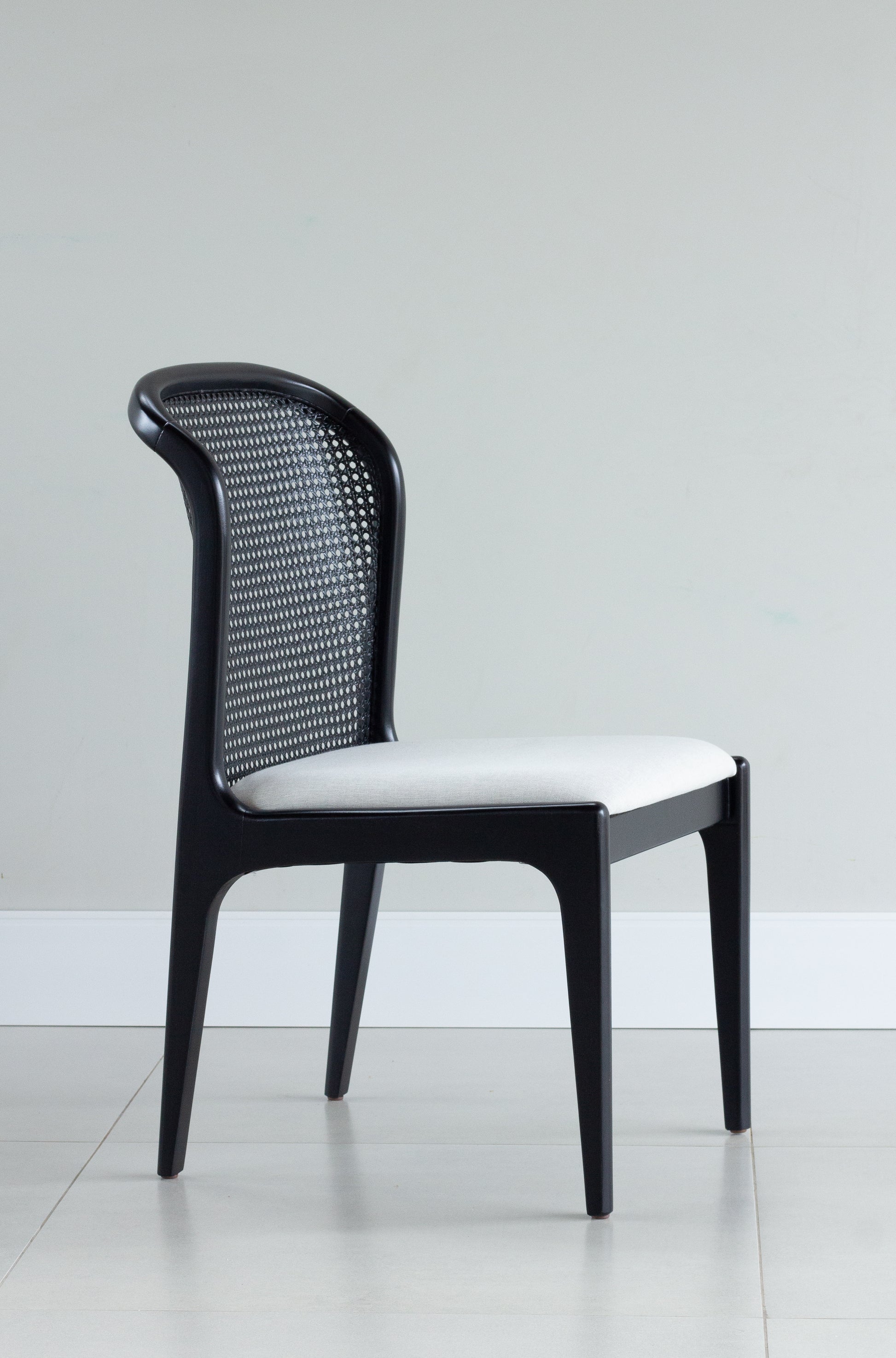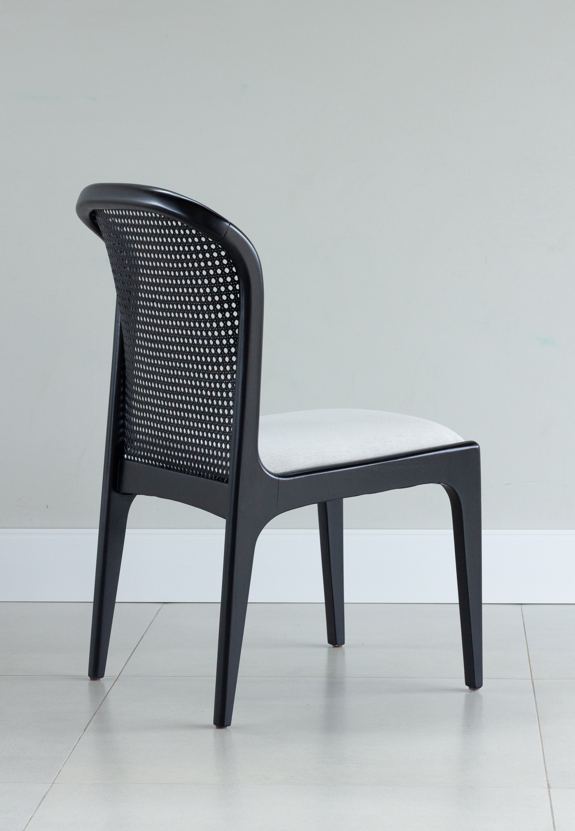 Cadeira Ester Madeira Pintura Ebano Assento Estofado Tecido AQ2005