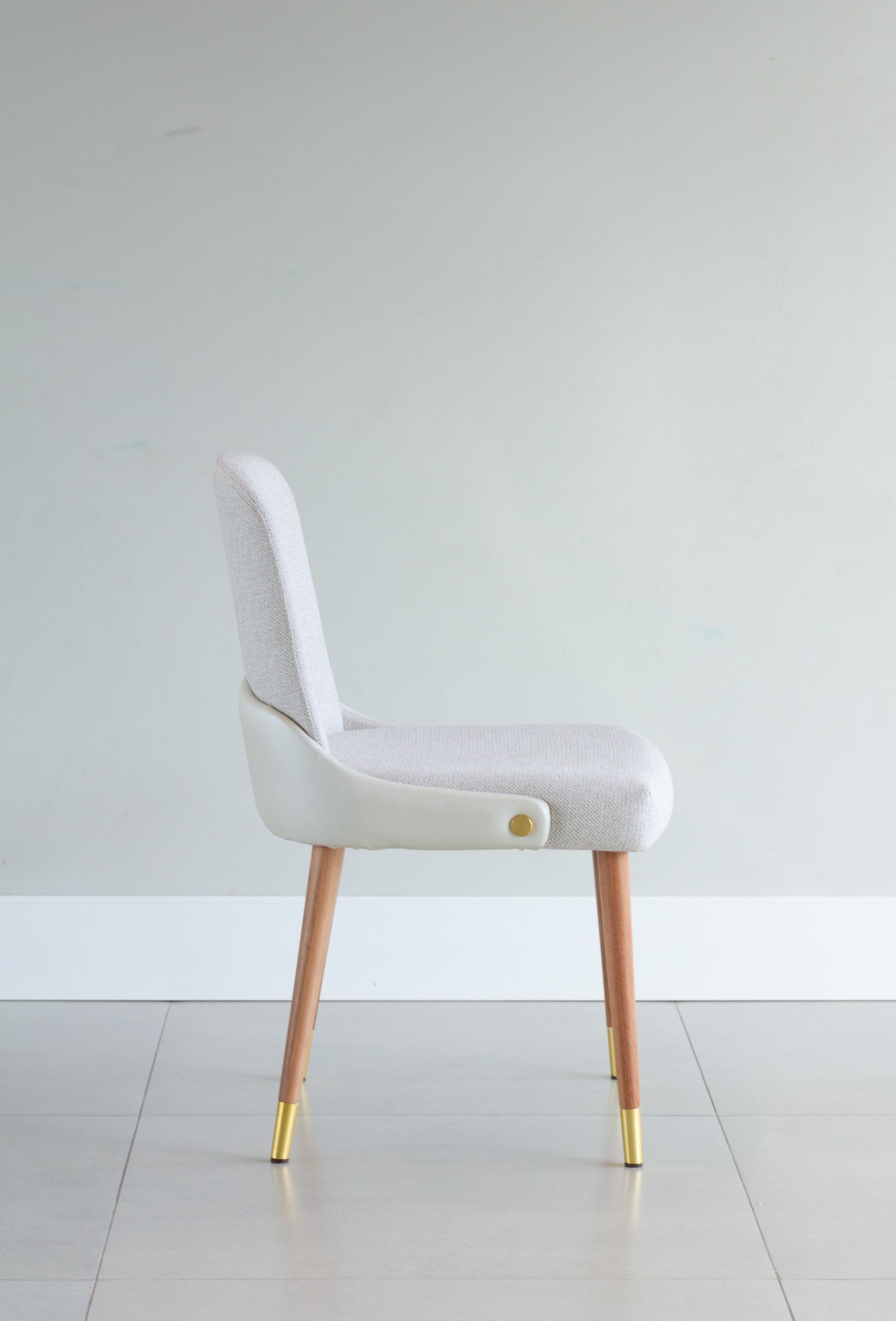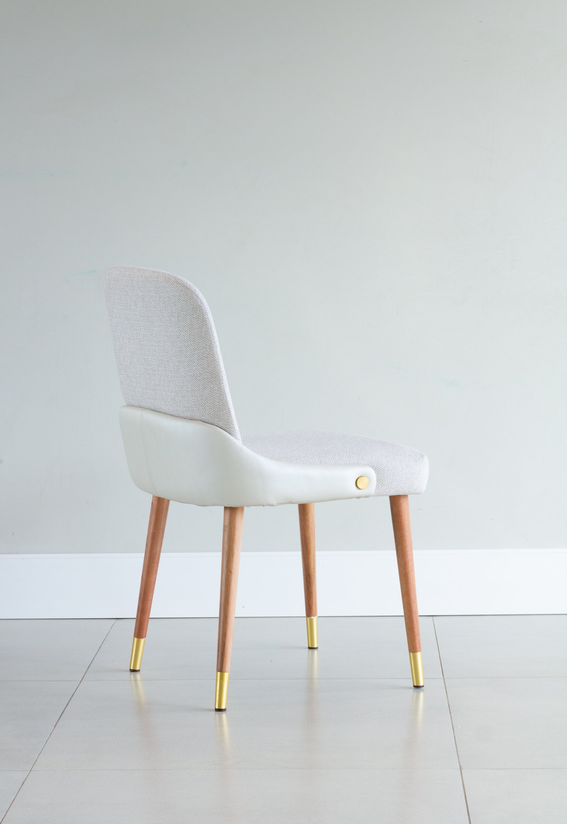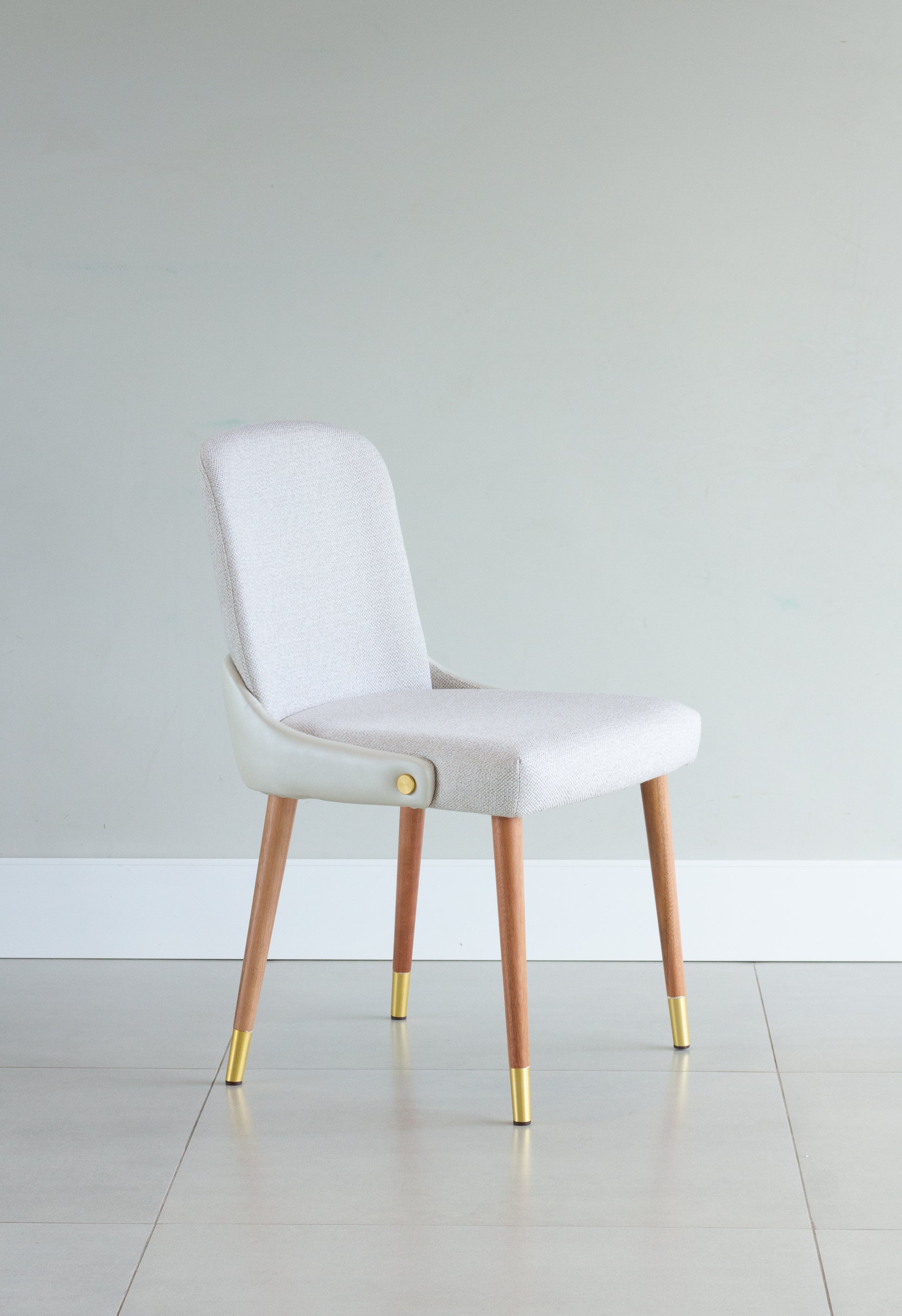 Cadeira Jasmine Madeira 60 Detalhe em couro AQ8017 Assento Estofado Tecido A+05